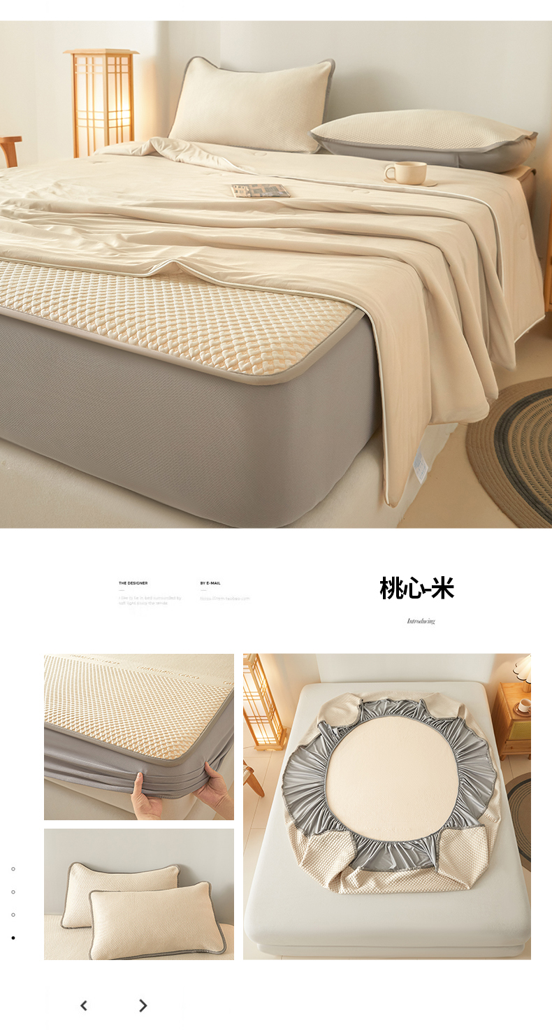 当前位置: 91家纺网 > 商品网购 > 床品套件 > 四件套 > 夏被四件套 > 欧邦 2025春夏新款PE凉感冰豆豆床笠款夏被夏凉被空调被四件套 桃心-粉