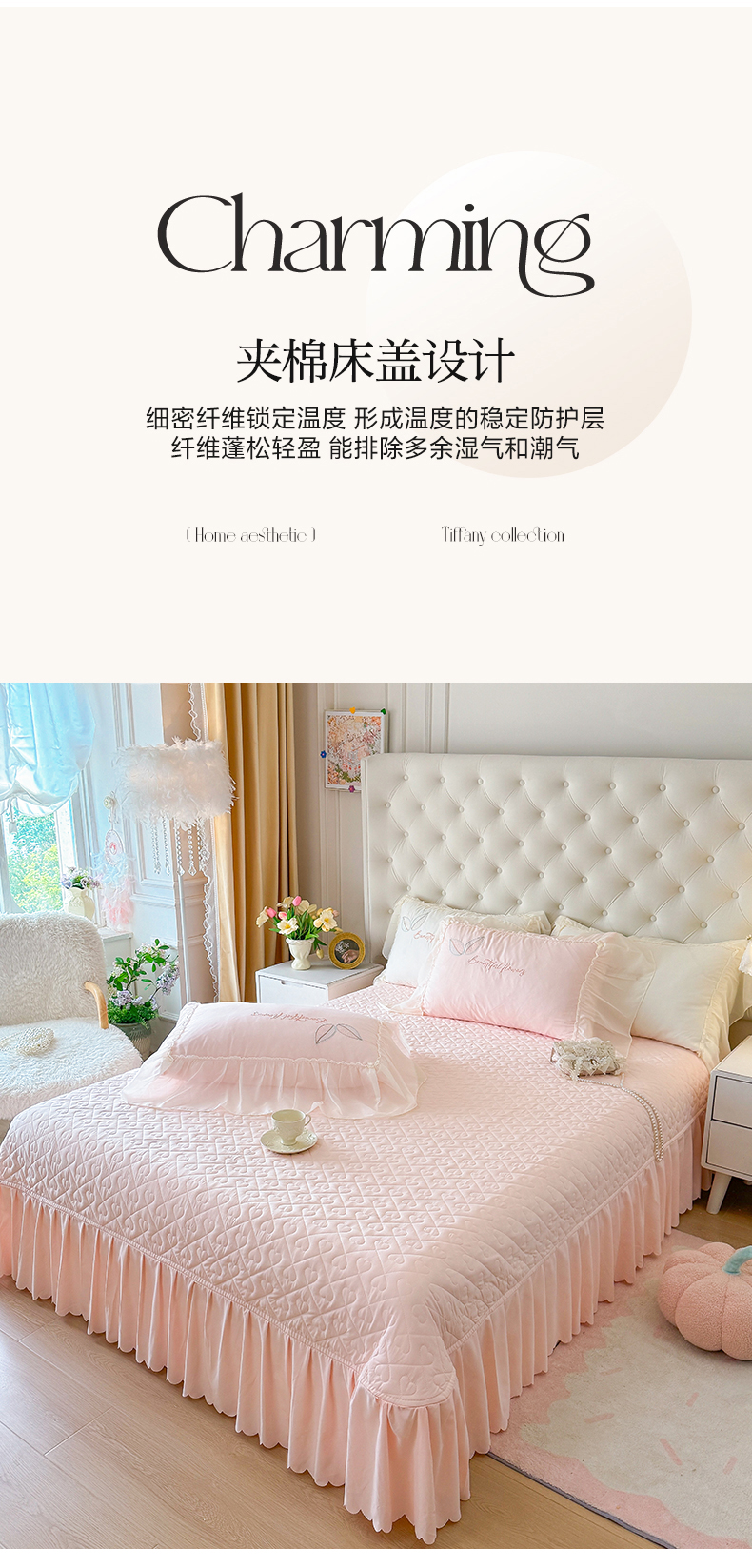 宅家居 2025新款法式花边浪漫花卉爱心刺绣绗绣床盖夏被夏凉被空调被四件套-玫瑰之恋 玫瑰之恋-奶白