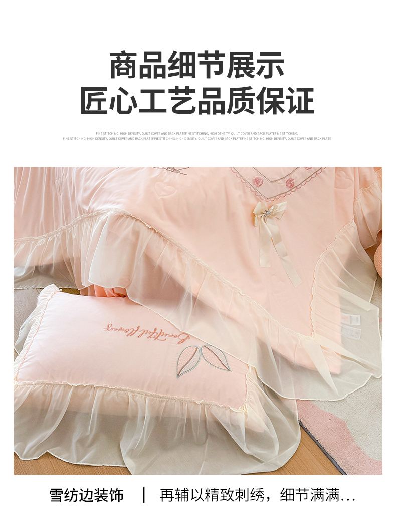 (总)宅家居 2023新款双层纱菱形格贴布绣花边四件套-罗威系列,罗威-淡蓝,罗威-果绿,罗威-奶白,罗威-浅灰,罗威-桃粉