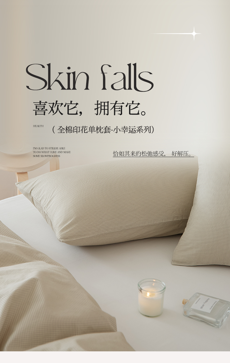 商品名称:EH家居 2025春夏新款40s全棉纯棉印花枕套单件 单枕套-小幸运 千鸟小格