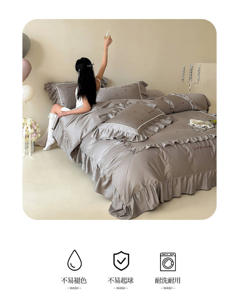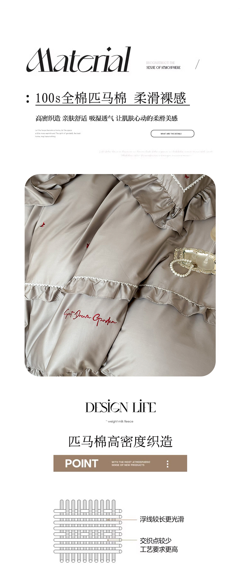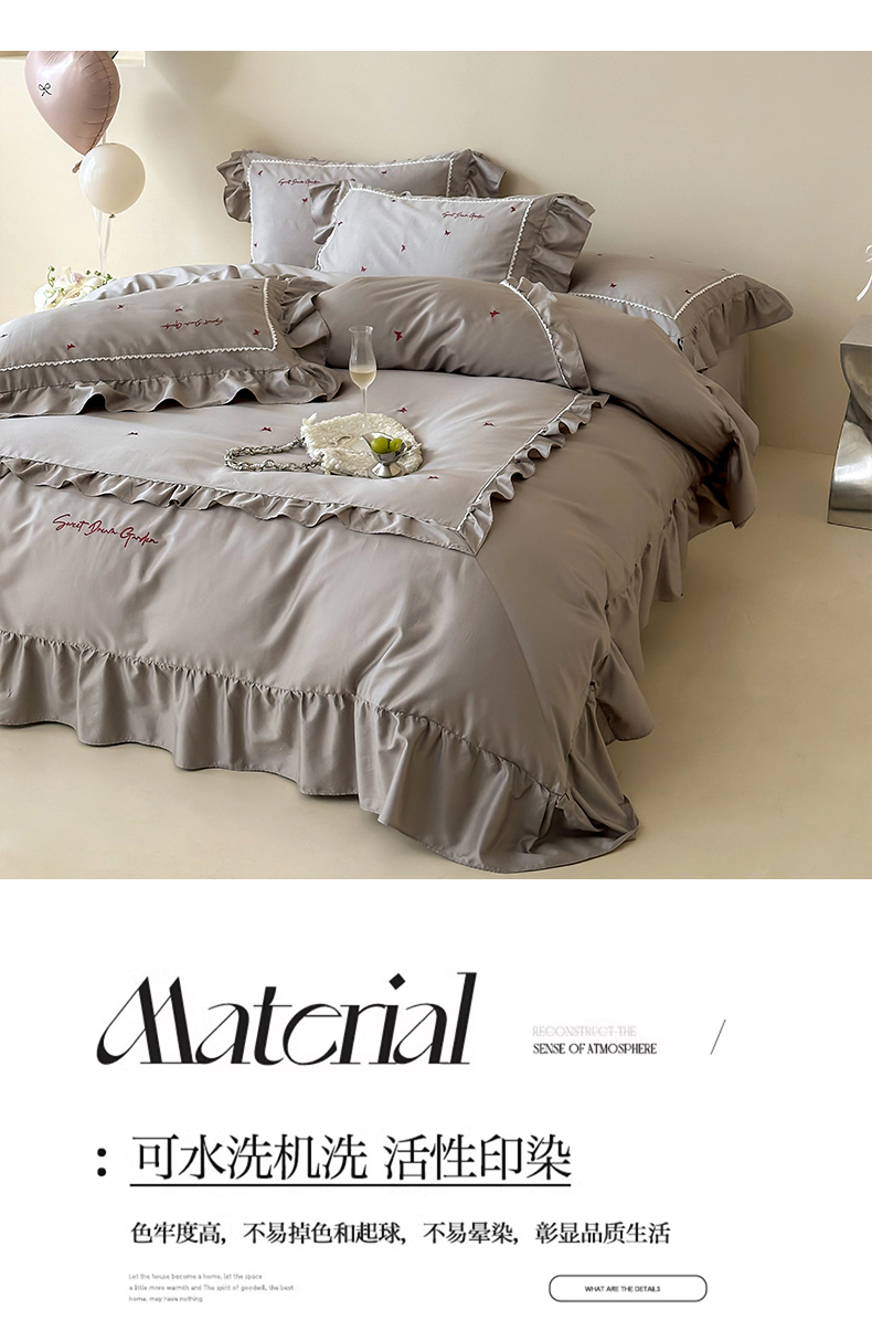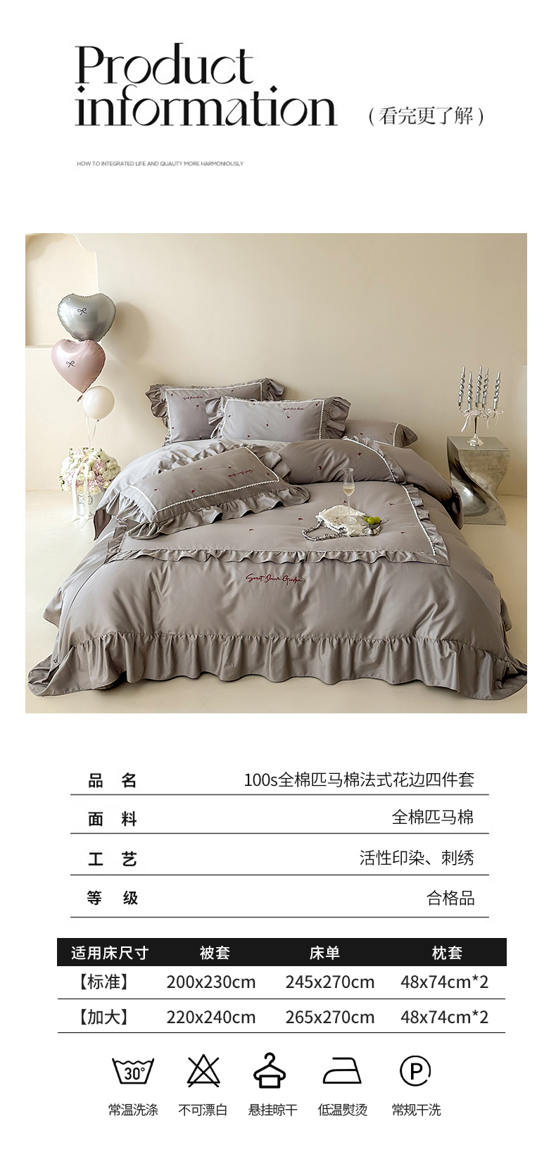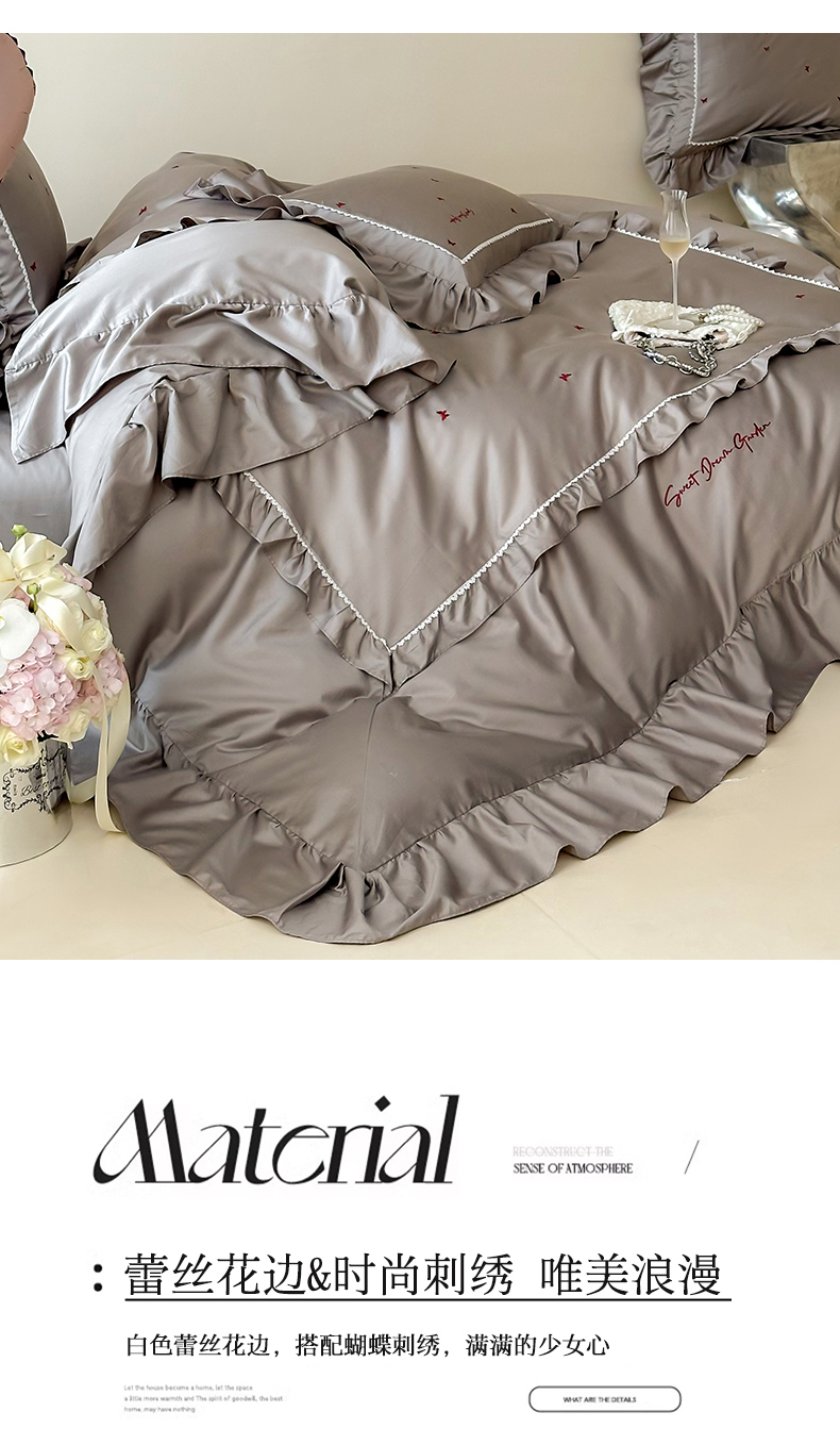 商品名称:红番天家居馆 2025新款全棉纯棉贡缎长绒棉法式刺绣花边四件套-蝶梦 蝶梦-星辰灰