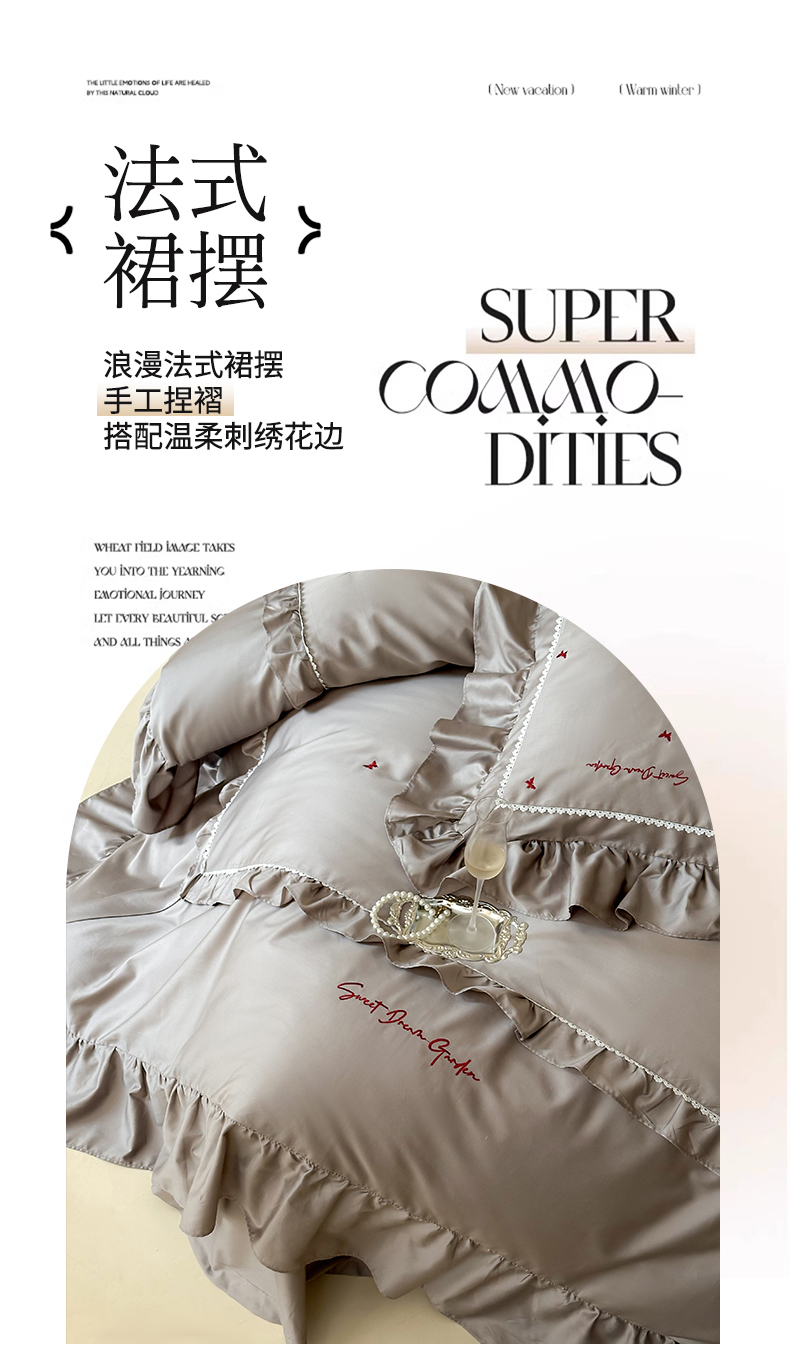 (总)红番天家居馆 2025新款全棉纯棉贡缎长绒棉手工捏折刺绣蕾丝四件套-觅春,觅春-夹心粉,觅春-午后清晨,觅春-云朵吐司