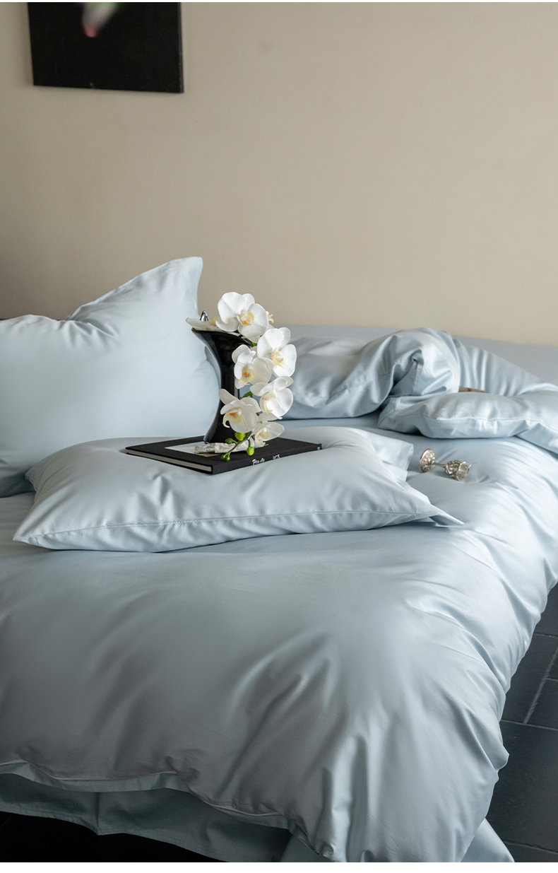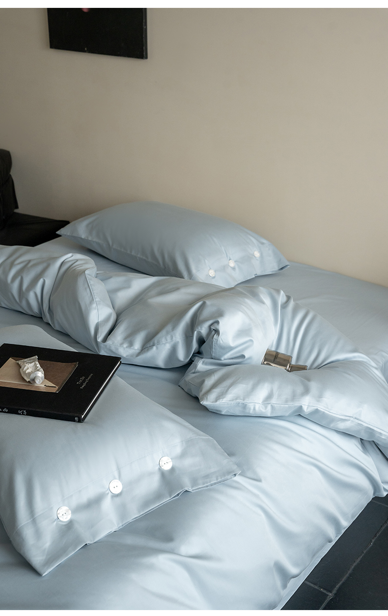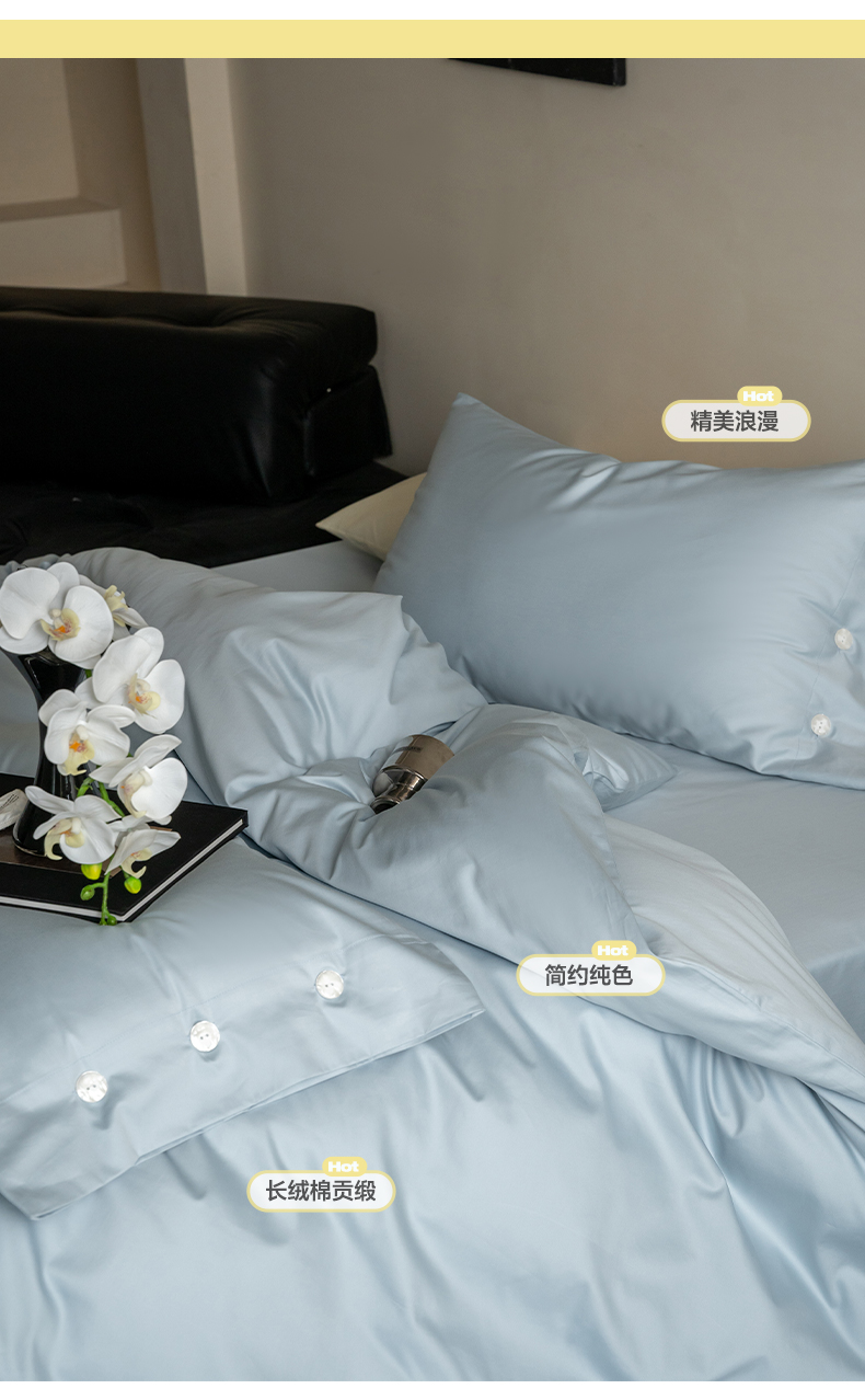 当前位置: 91家纺网 > 商品网购 > 床品套件 > 四件套 > 长绒棉四件套 > 华超针织 2025新款长绒棉纯棉贡缎纯色四件套 雨雾蓝