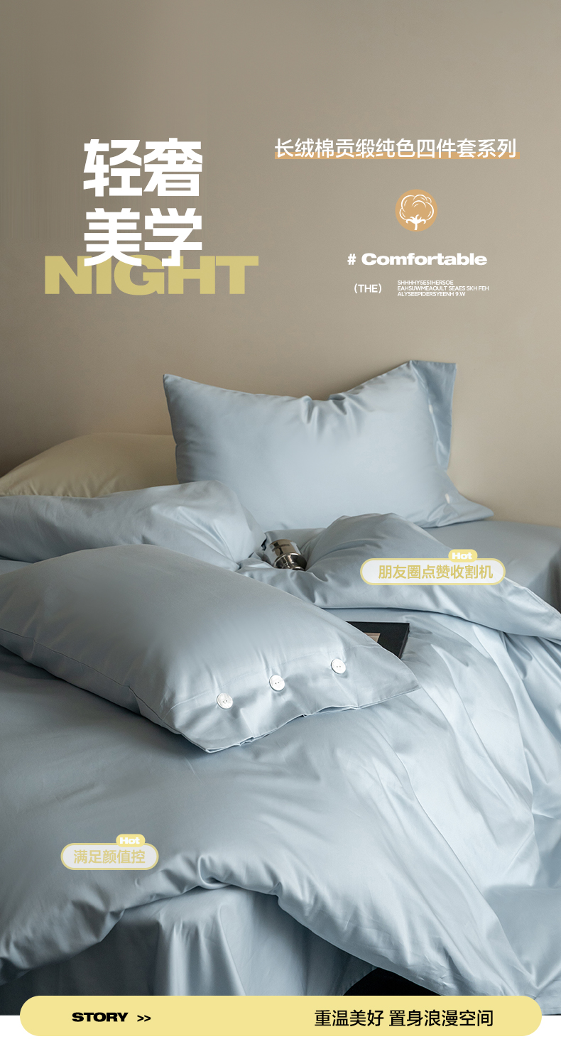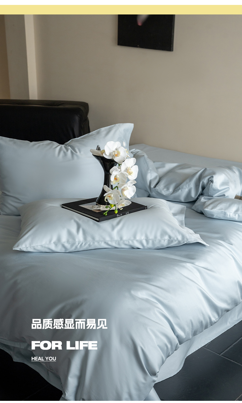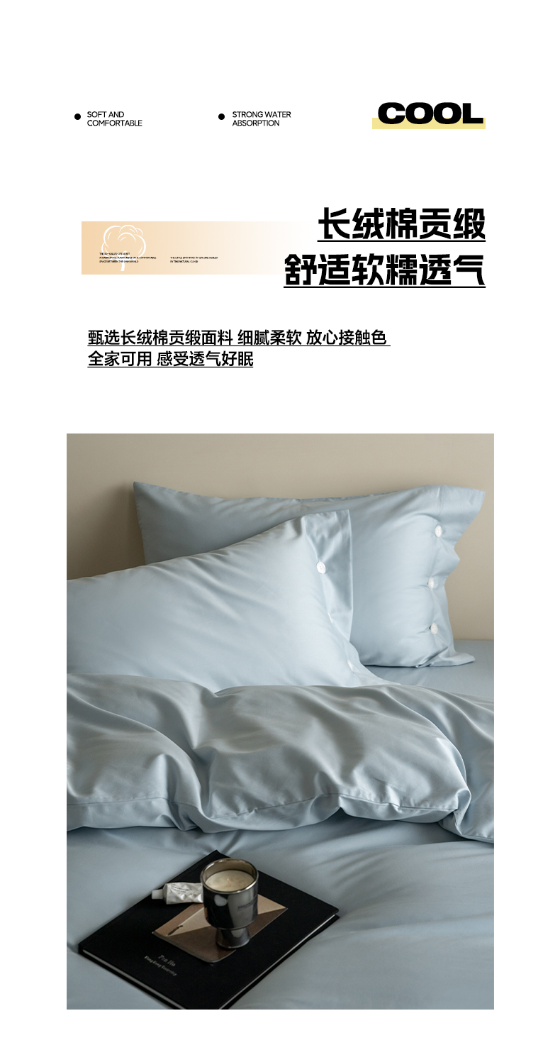 当前位置: 91家纺网 > 商品网购 > 床品套件 > 四件套 > 长绒棉四件套 > 华超针织 2025新款长绒棉纯棉贡缎纯色四件套 雨雾蓝