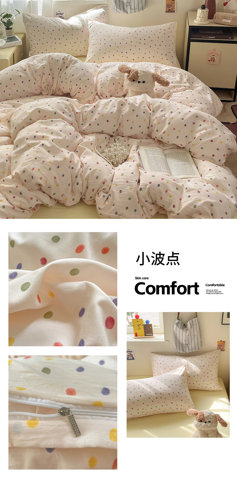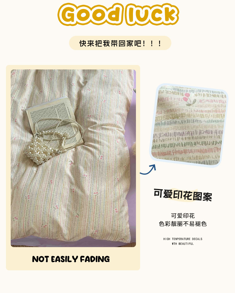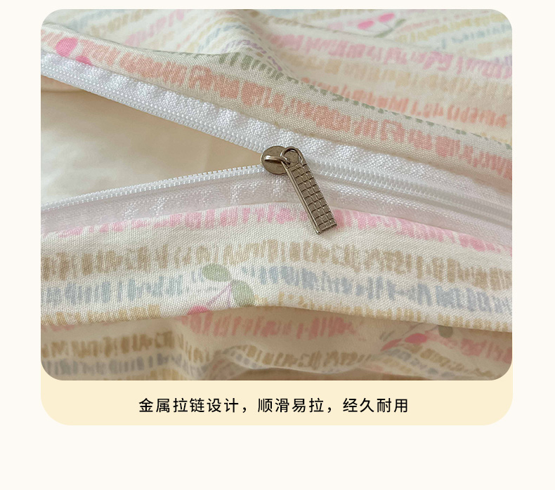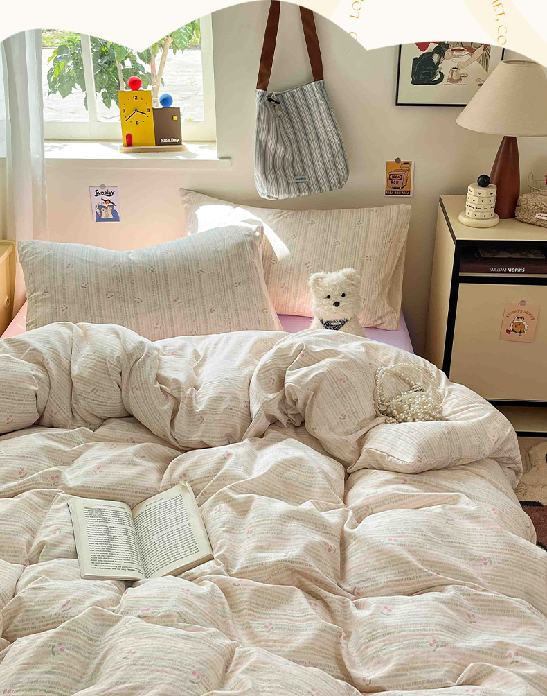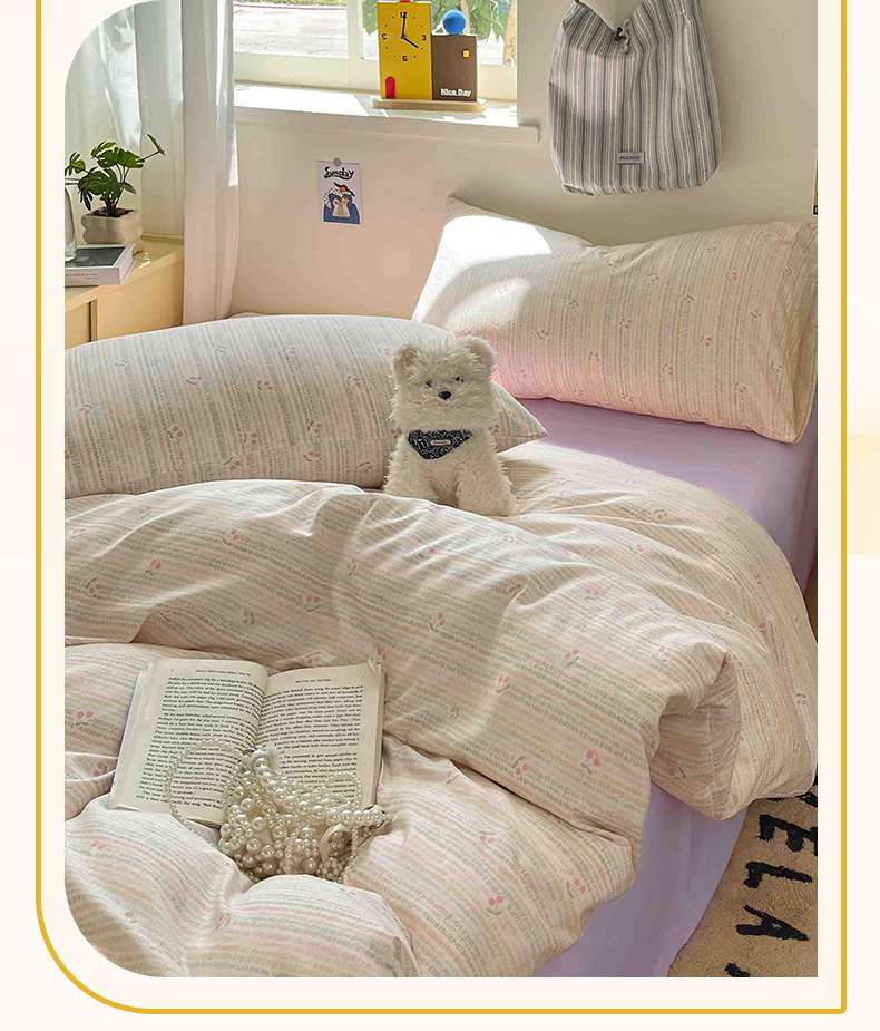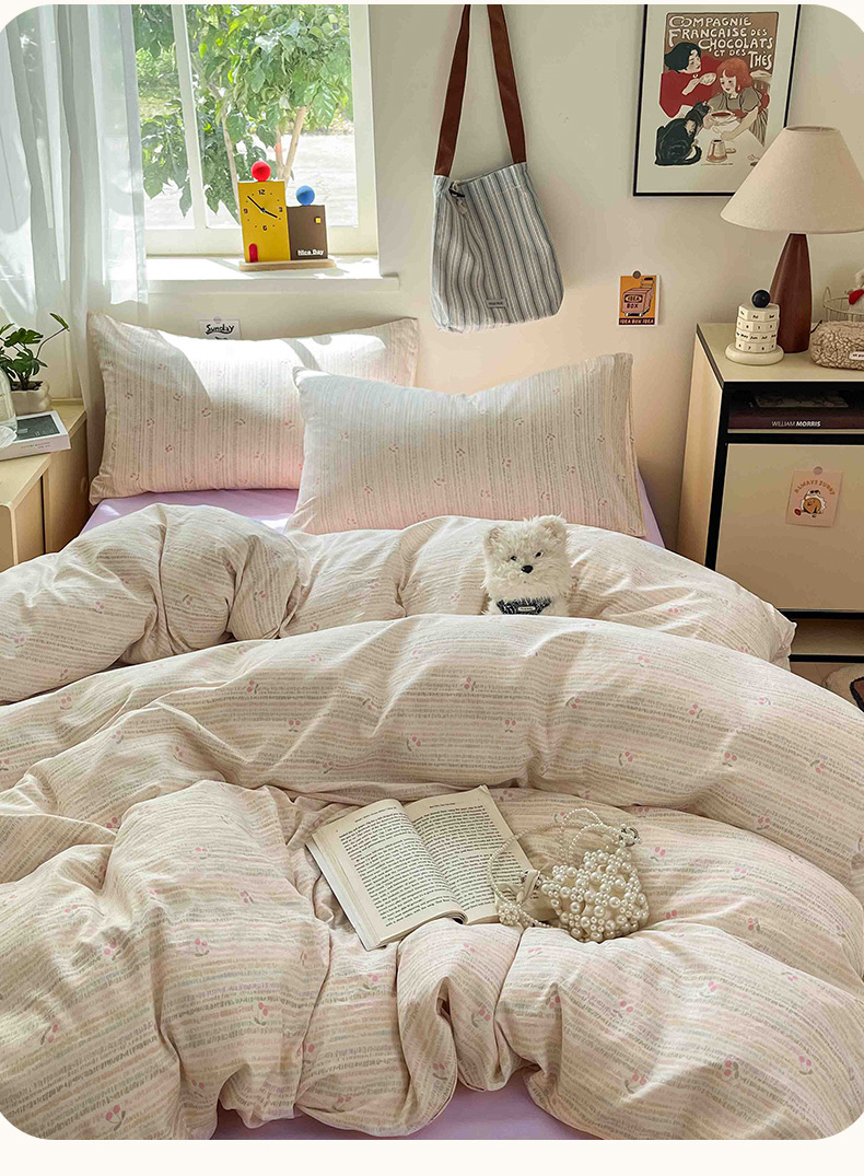 商品名称:罗亿家纺 2025新款软绵绵的双拼印花小清新水洗云朵棉四件套(含买家秀场景二) 樱桃恋曲