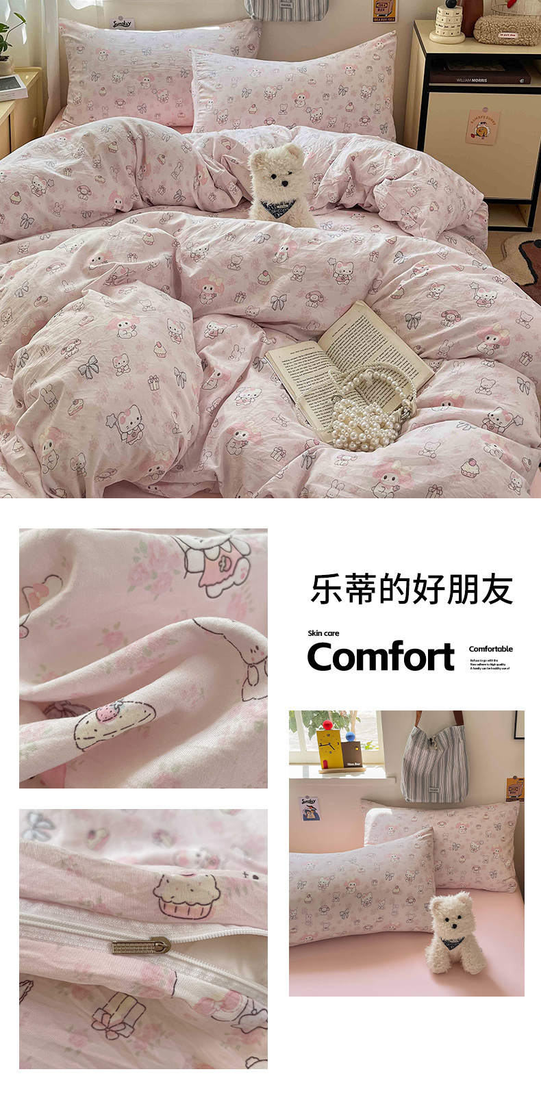 (总)罗亿家纺 2026新款A类古法水洗仿棉云感纱四件套,俏皮豹纹-kt-粉,小幸运,花颜,甜品小猫,爱心甜猫,梦境花园,芝士莓莓熊,蝴蝶结,冰淇淋超甜,奶味星人,狗狗乐园,花花kt梦,小时光,小鱼的心事,旋转木马,樱桃格格,葡萄很甜,花集小兔,焦糖LABUBU,梦幻乐园,绿萌兔子,烟花星语