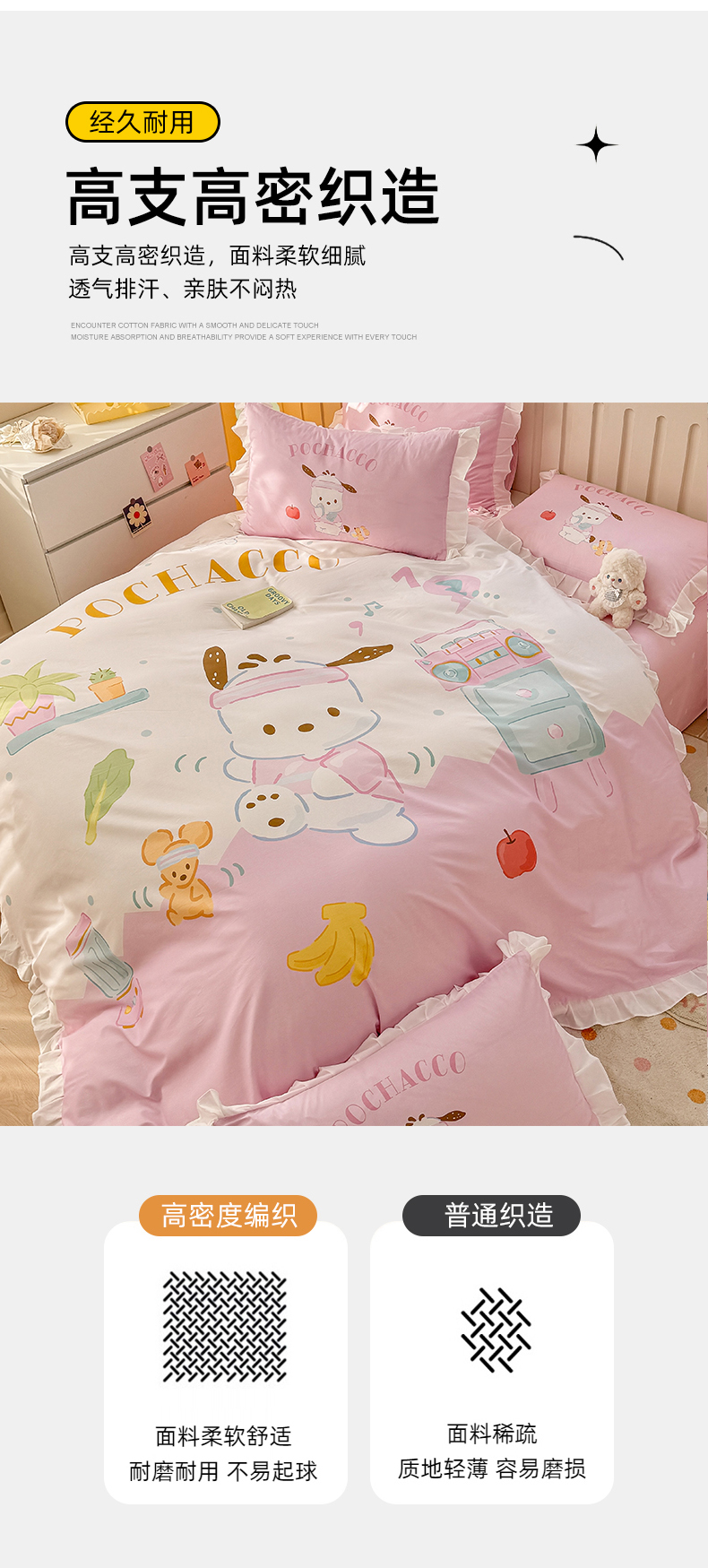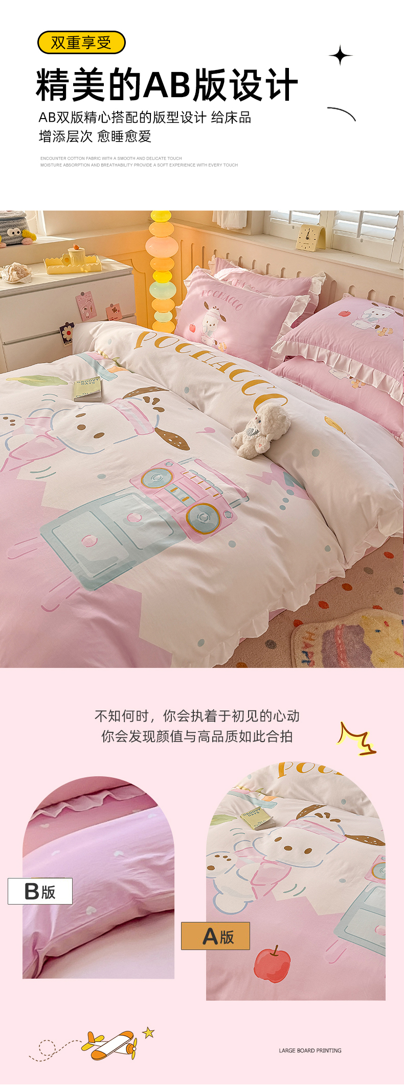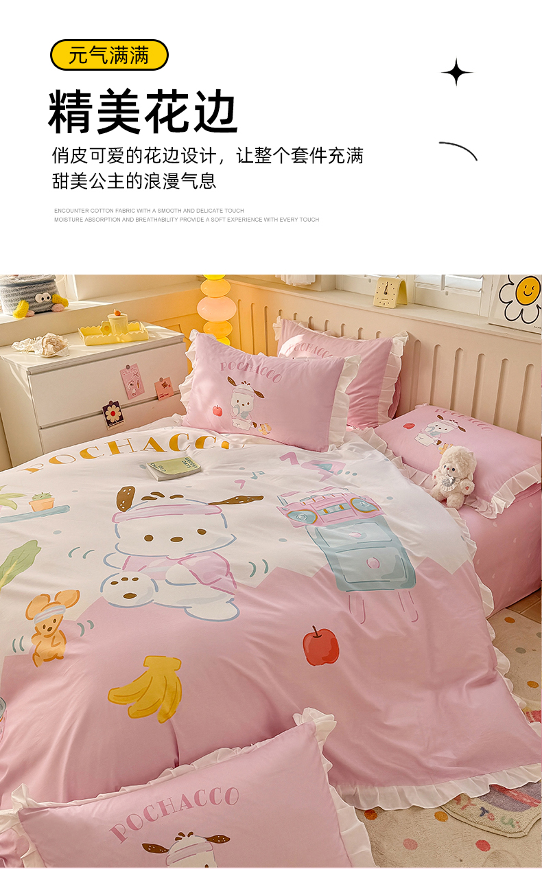 当前位置: 91家纺网 > 商品网购 > 床品套件 > 四件套 > 全棉普通四件套 > 玉元坊 2025新款三丽鸥白花边被套数码印花大版全棉纯棉卡通三四件套 花边款-活力帕恰狗