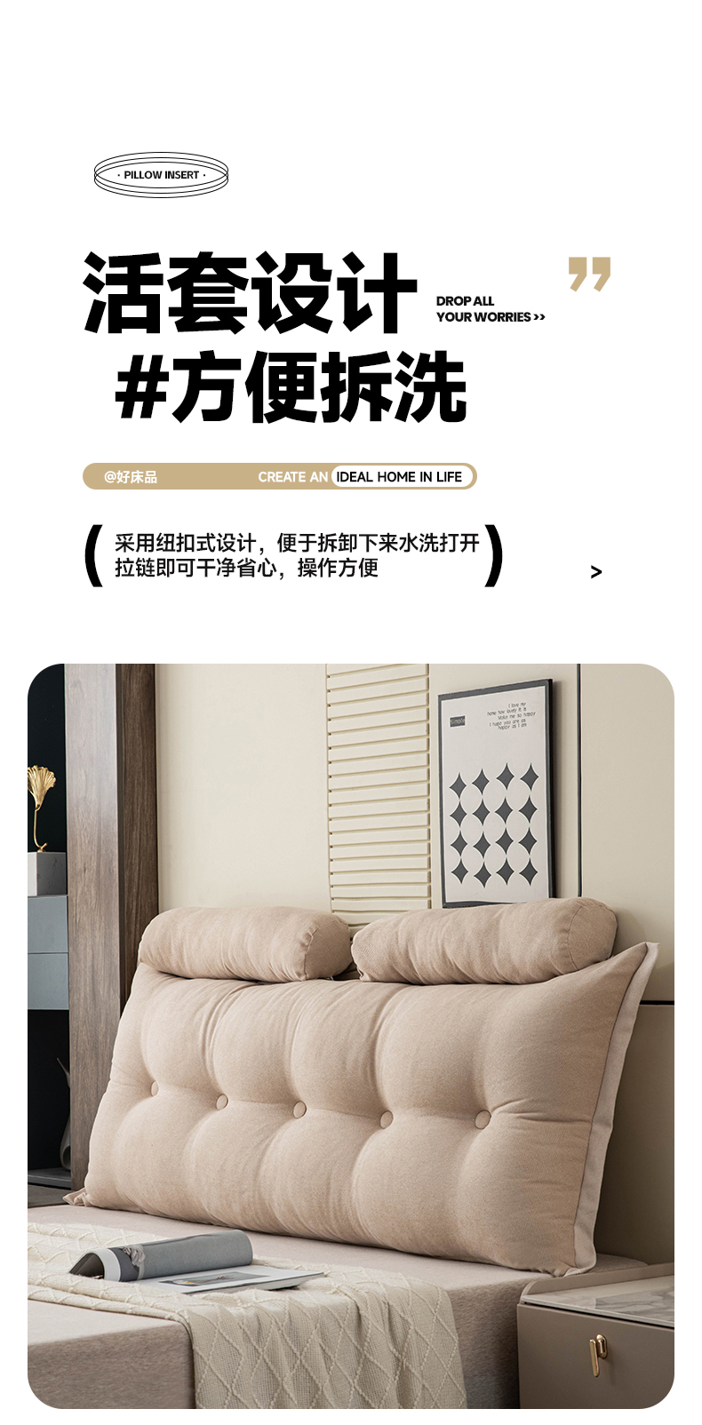 当前位置: 91家纺网 > 商品网购 > 居家日用 > 靠垫/抱枕 > 一兰家纺 2025新款四季通用三角靠垫床头大靠背腰靠沙发靠背可拆洗-希尔系列 希尔-质感米