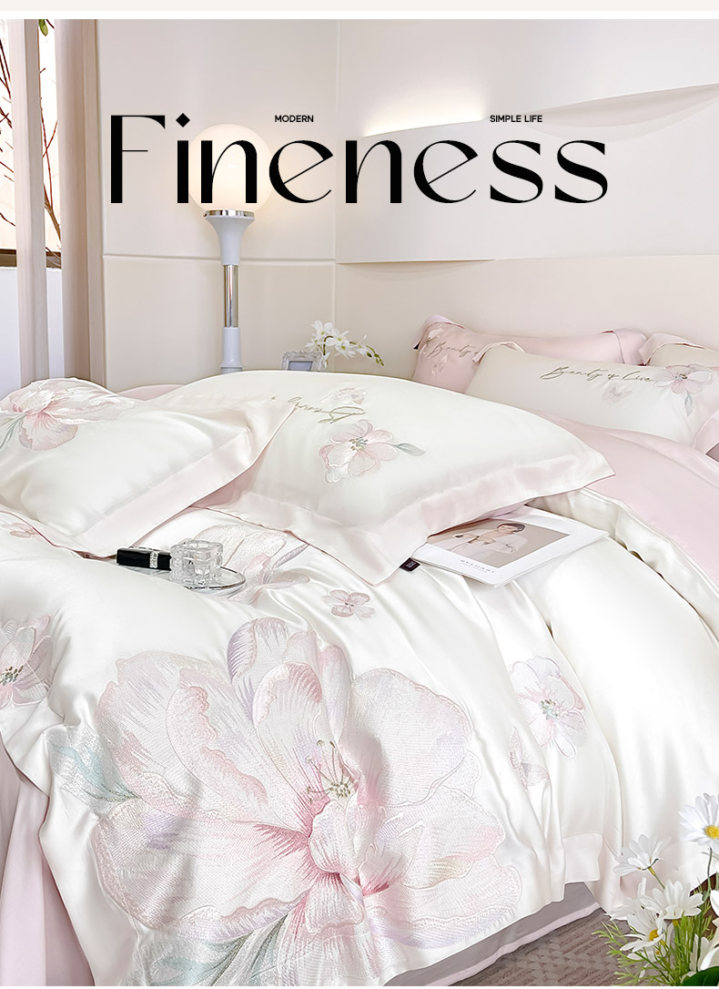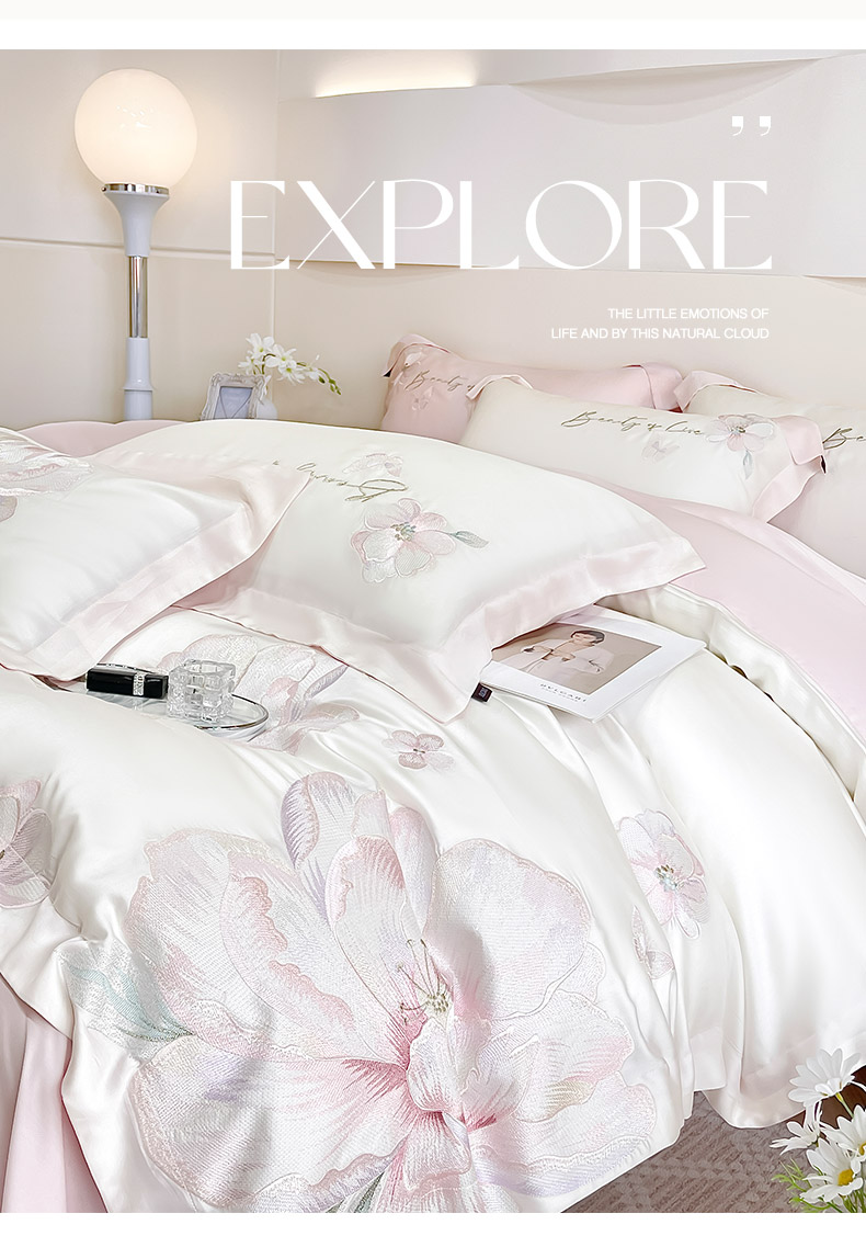 (总) 2025春夏长绒棉四件套纯棉全棉轻奢风床单被套重工刺绣床上用品,芊羽梦-白粉,芊羽梦-茶绿,芊羽梦-黛紫,芊羽梦-慕蓝,芊羽梦-颜粉