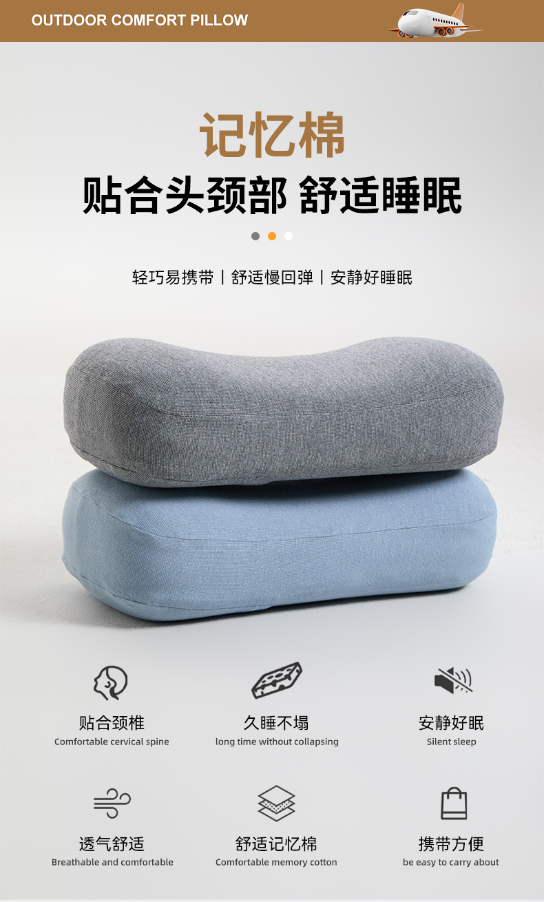 当前位置: 91家纺网 > 商品网购 > 枕头/枕芯/保健枕/颈椎枕 > 普通枕芯 > 昕科 2025新款便携记忆棉旅行枕-记忆棉午睡枕旅行出差枕便携小枕头旅游枕头办公司靠枕折叠枕芯 便携小枕头-蓝色42x20x9/11cm一只
