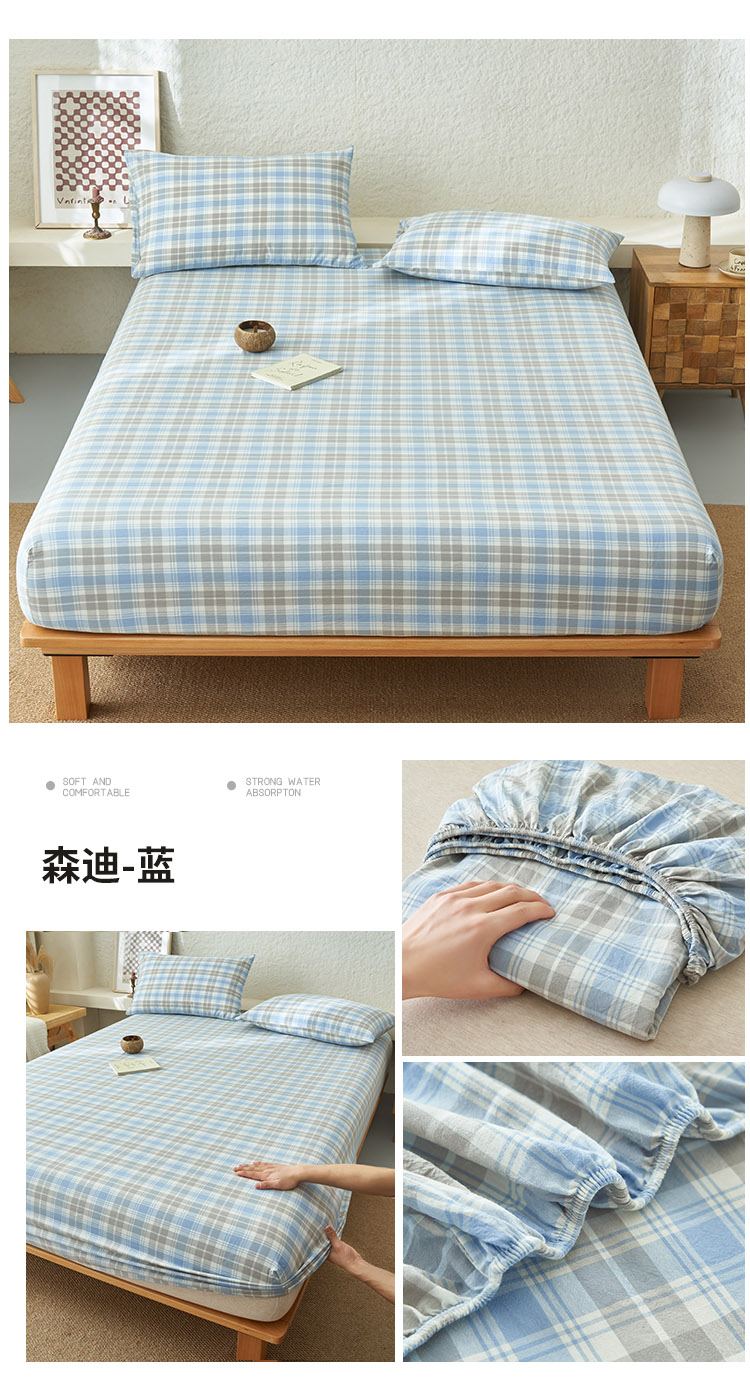 早晨家纺 2025新款色织纯棉水洗棉床笠 森迪-蓝