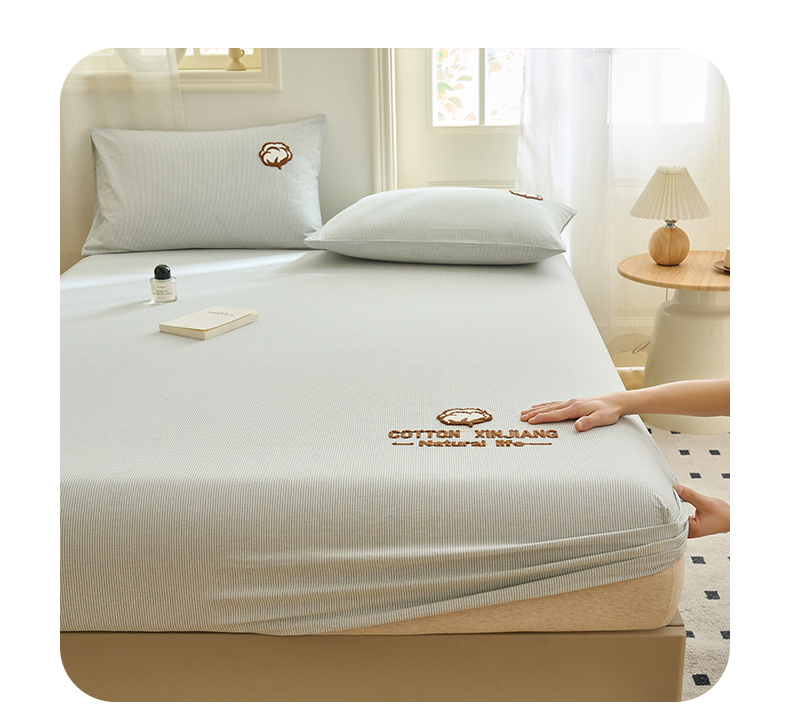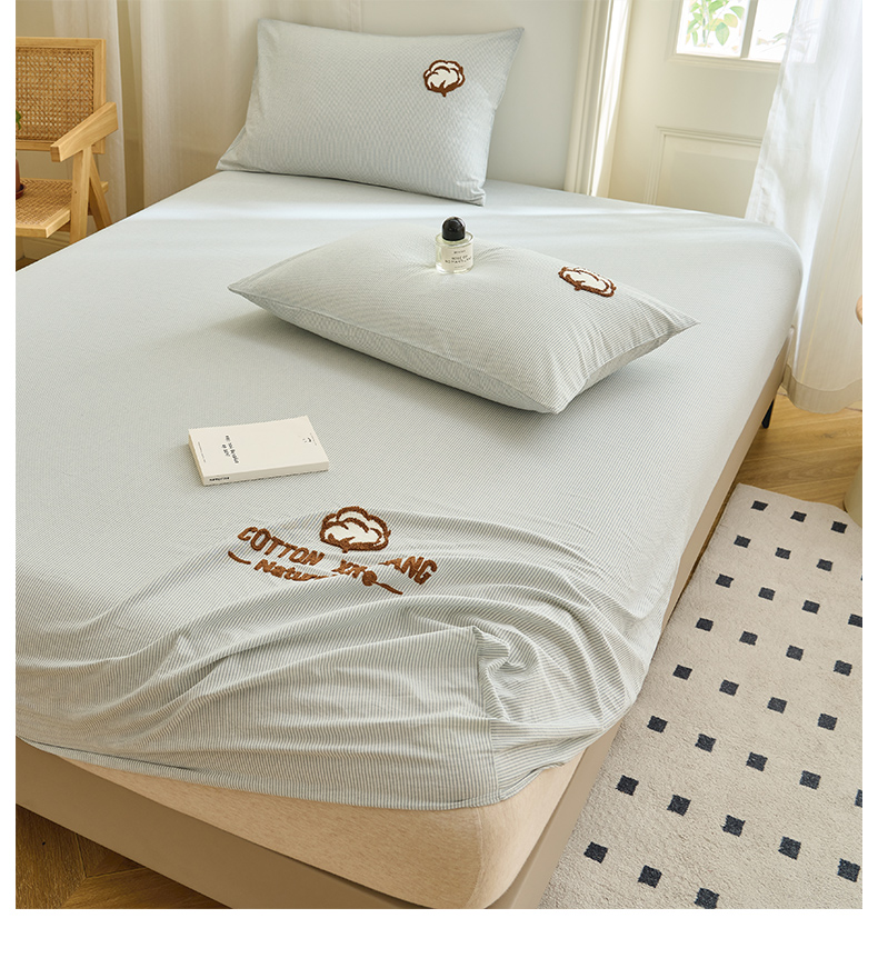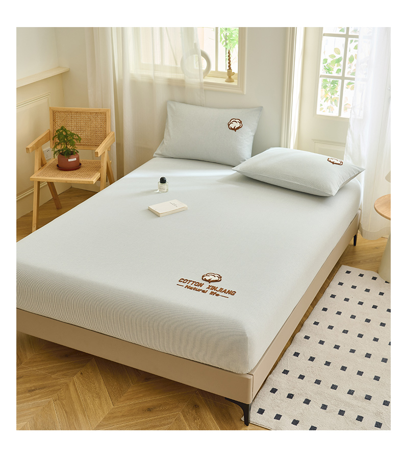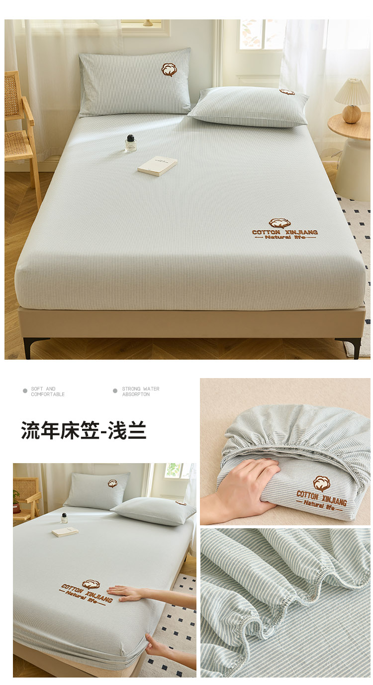 早晨家纺 2025新款色织纯棉水洗棉毛巾绣床笠 流年床笠-浅兰