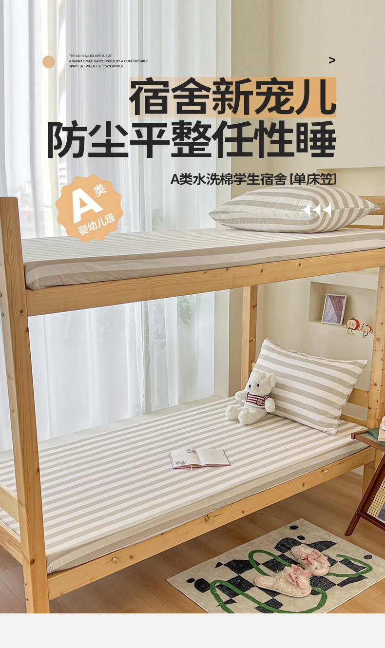 • 91家纺网 家纺一手货源 找家纺 多品家纺 2025春夏新款超柔水洗棉学生宿舍床笠 暮落浅咖