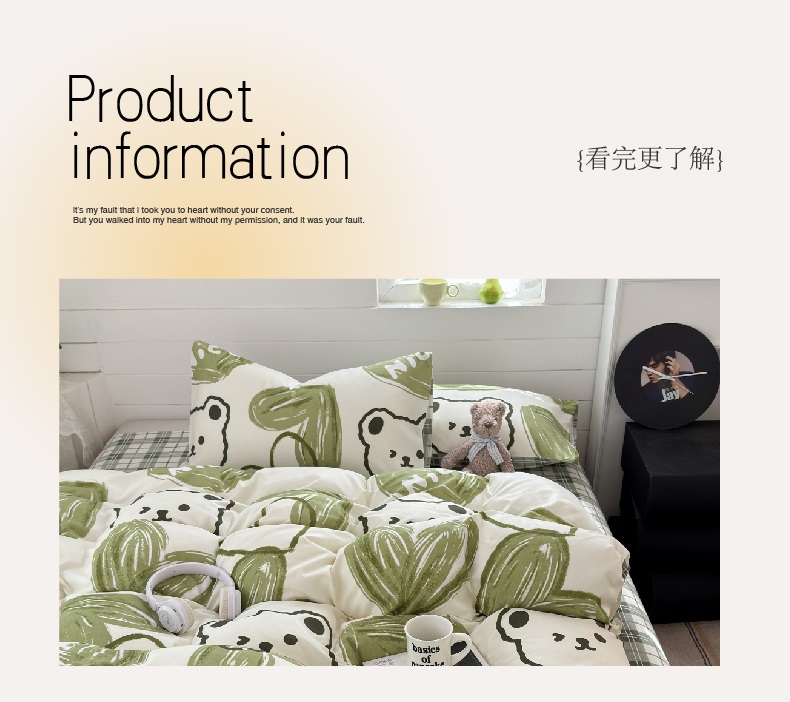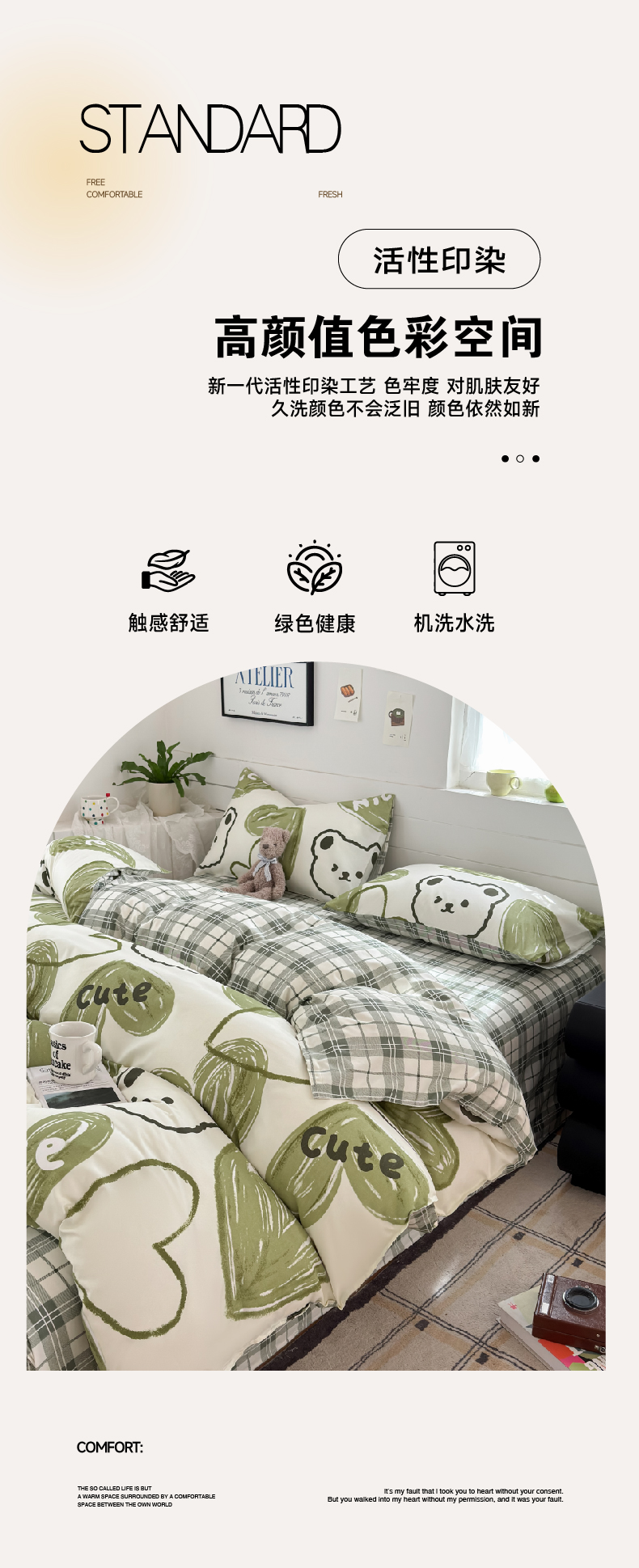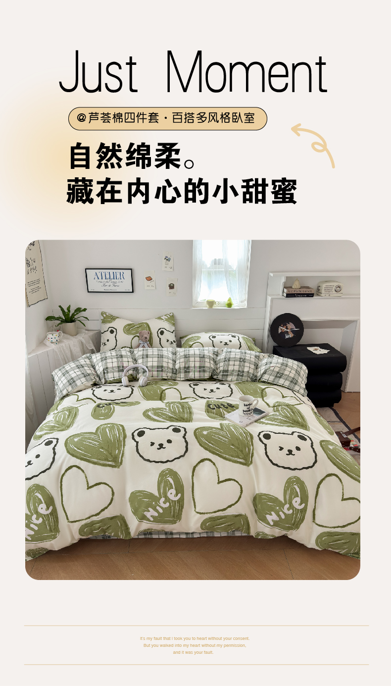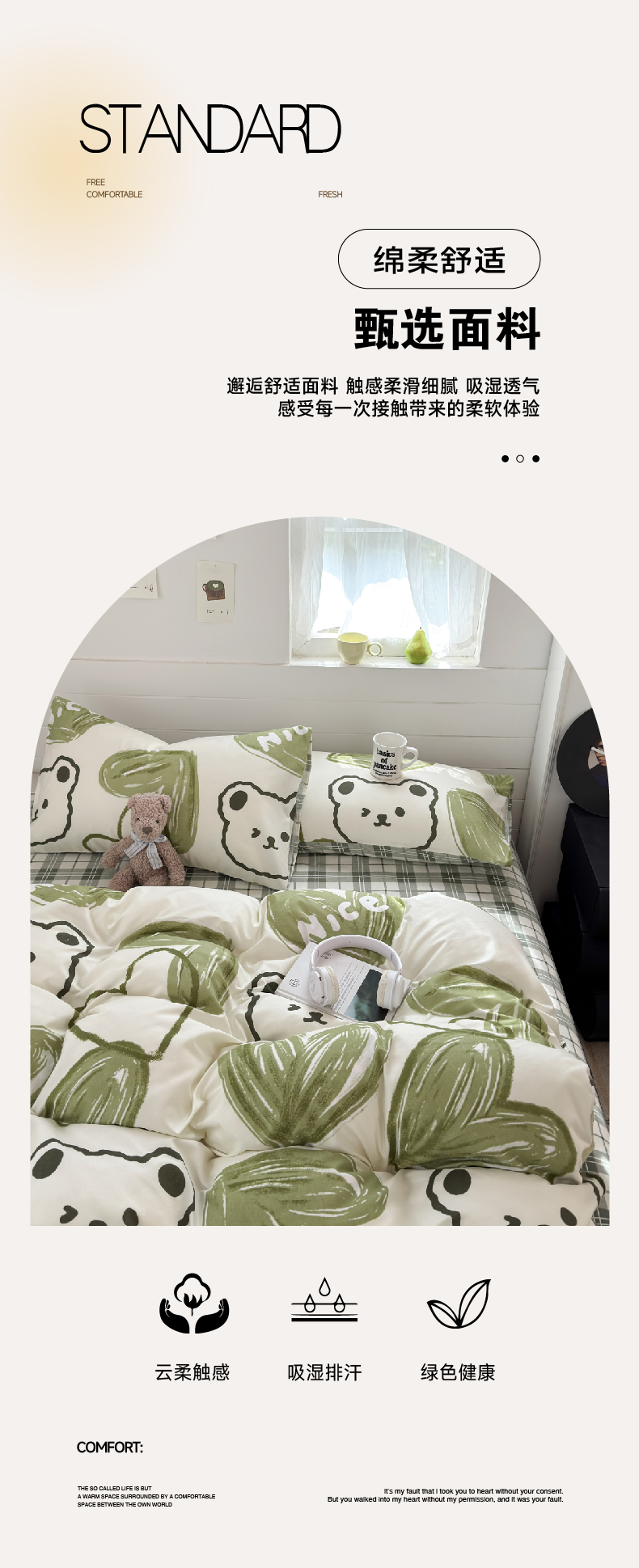 商品名称:可可家纺 2025新款印花卡通芦荟棉被套亲肤被罩单件小清新 森系熊