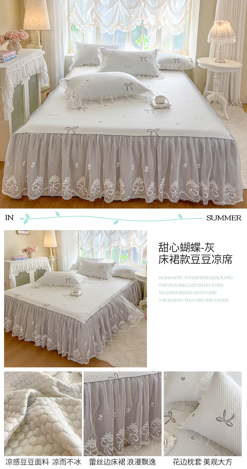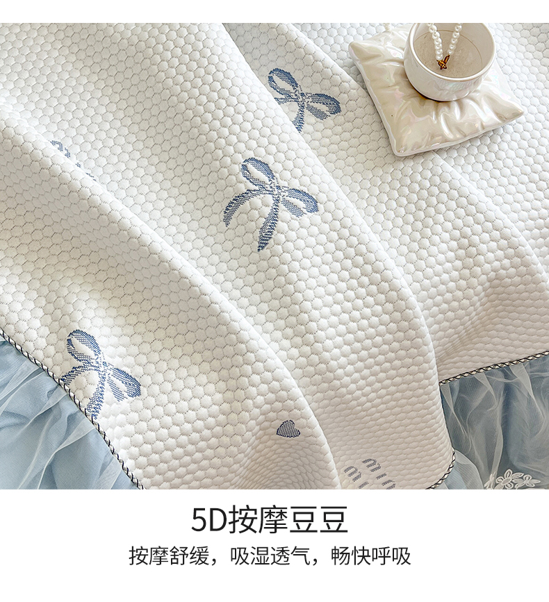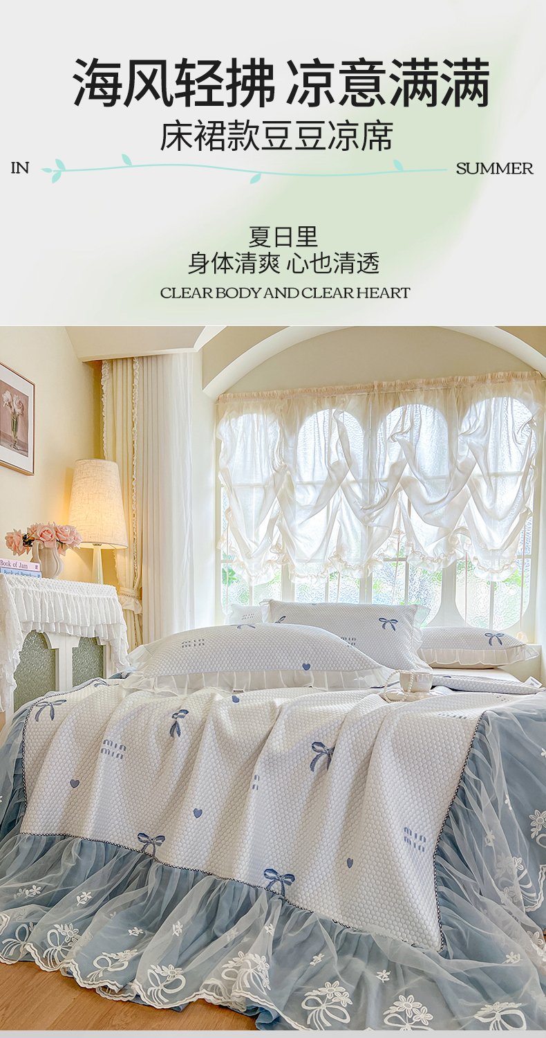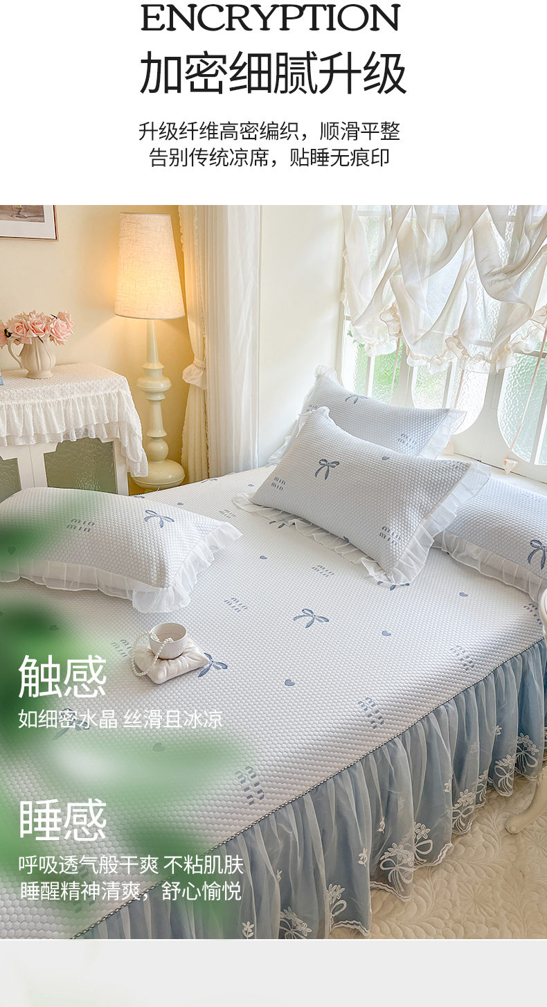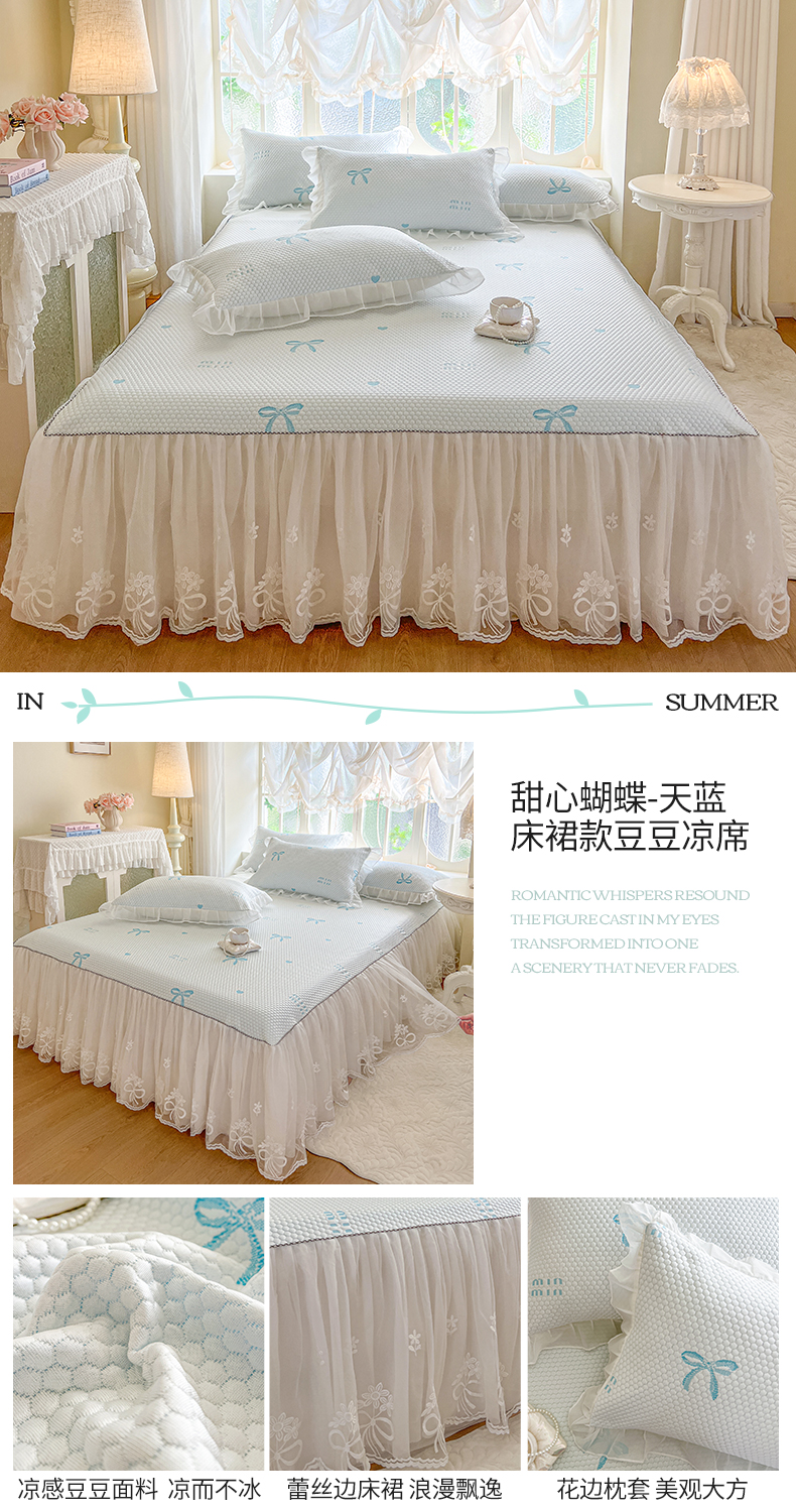 网红馆(ck家纺) 2025新款床裙款豆豆凉感席凉席席子-甜心蝴蝶 甜心蝴蝶-蔚蓝