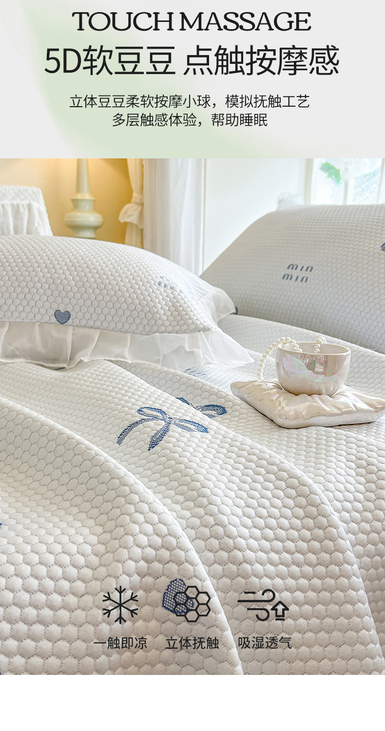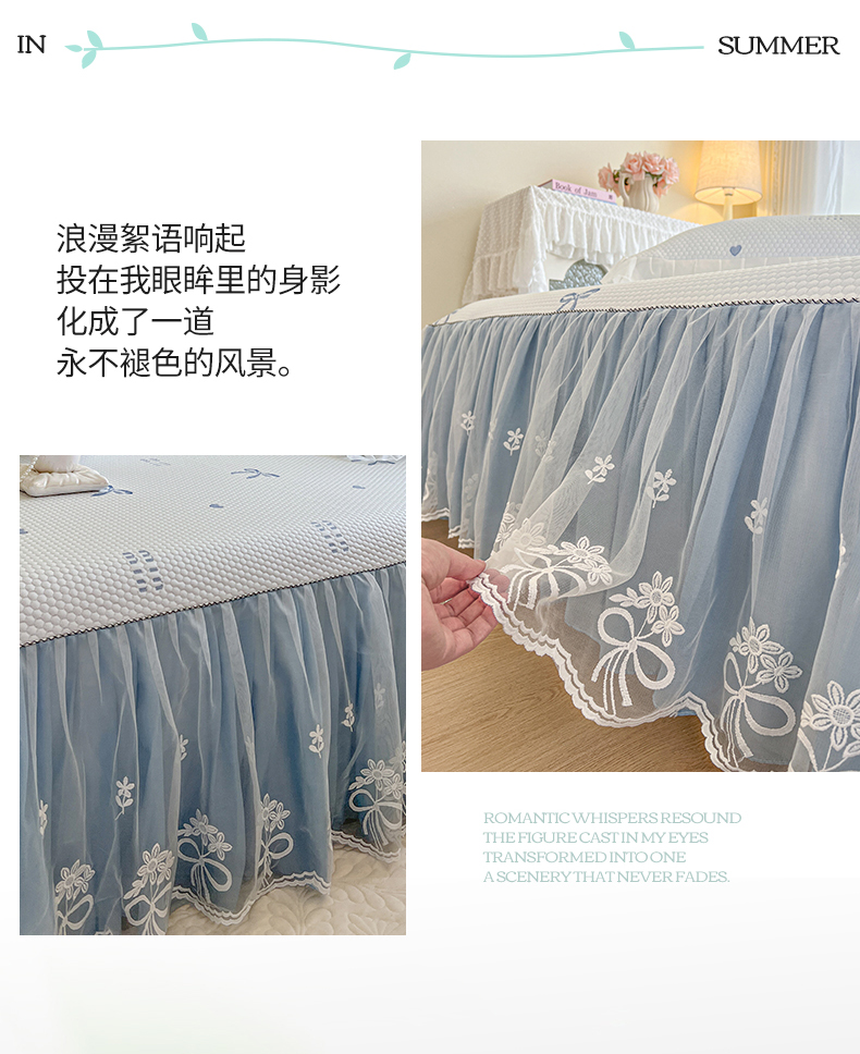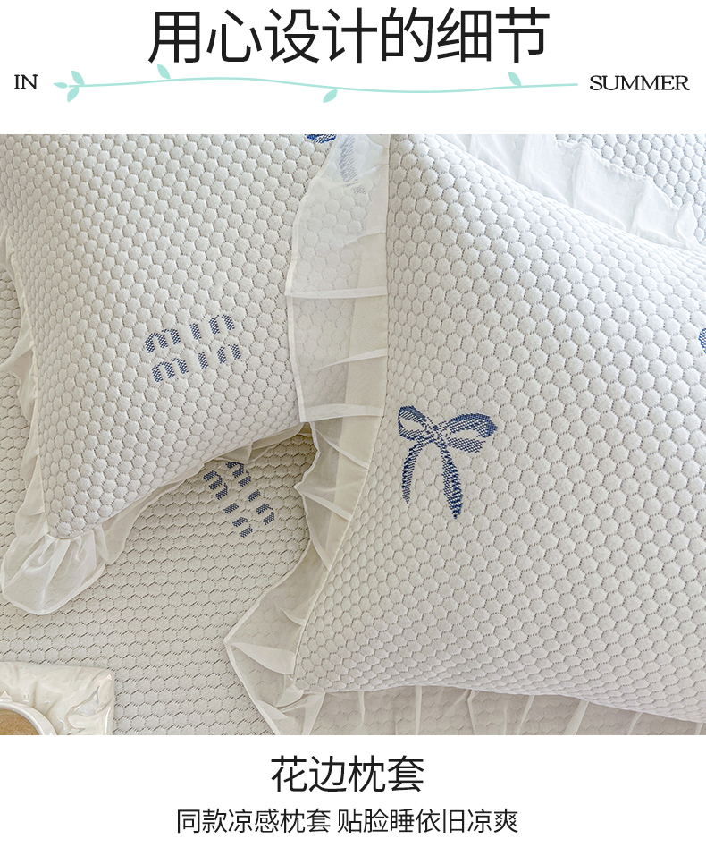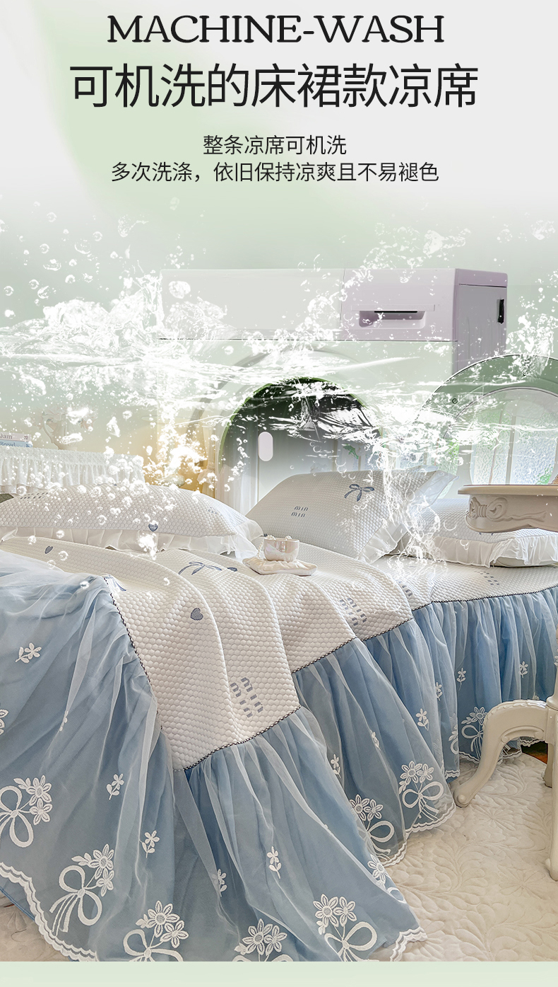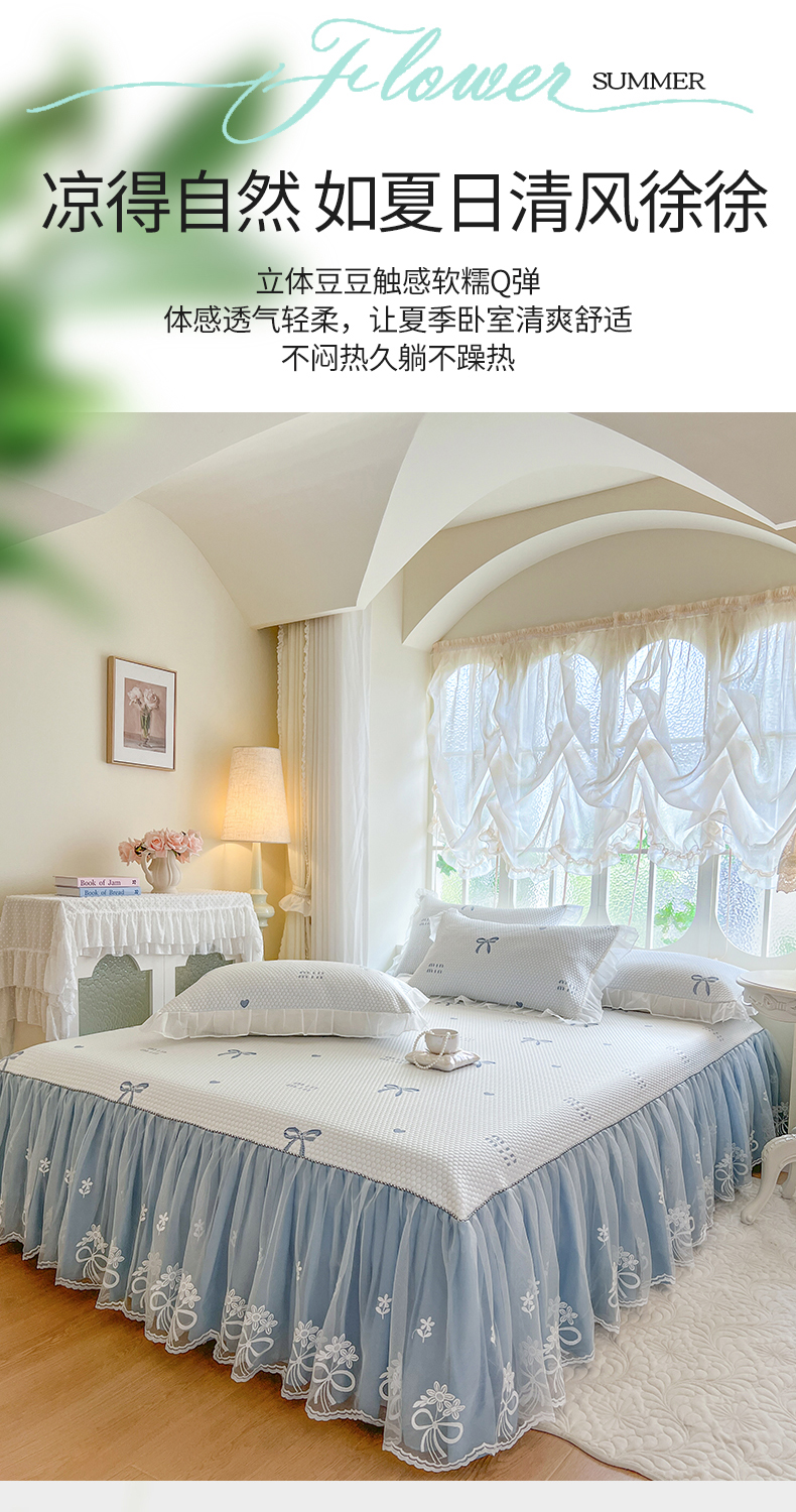 网红馆(ck家纺) 2025新款床裙款豆豆凉感席凉席席子-甜心蝴蝶 甜心蝴蝶-蔚蓝