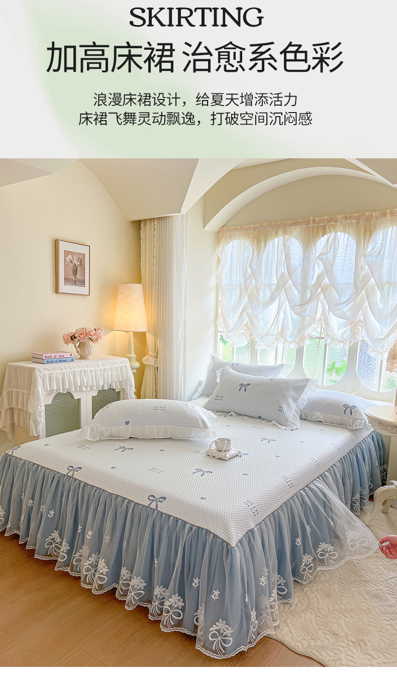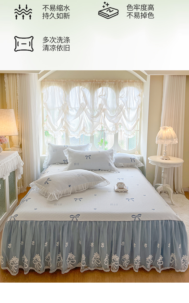 (总)网红馆(ck家纺) 2025新款色织提花牛奶绒床裙四件套-洛丽塔系列,洛丽塔-豆沙,洛丽塔-蓝色,洛丽塔-米色