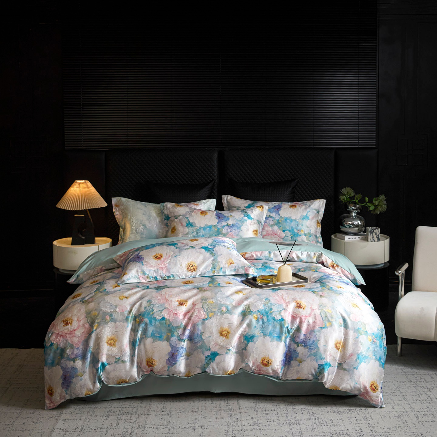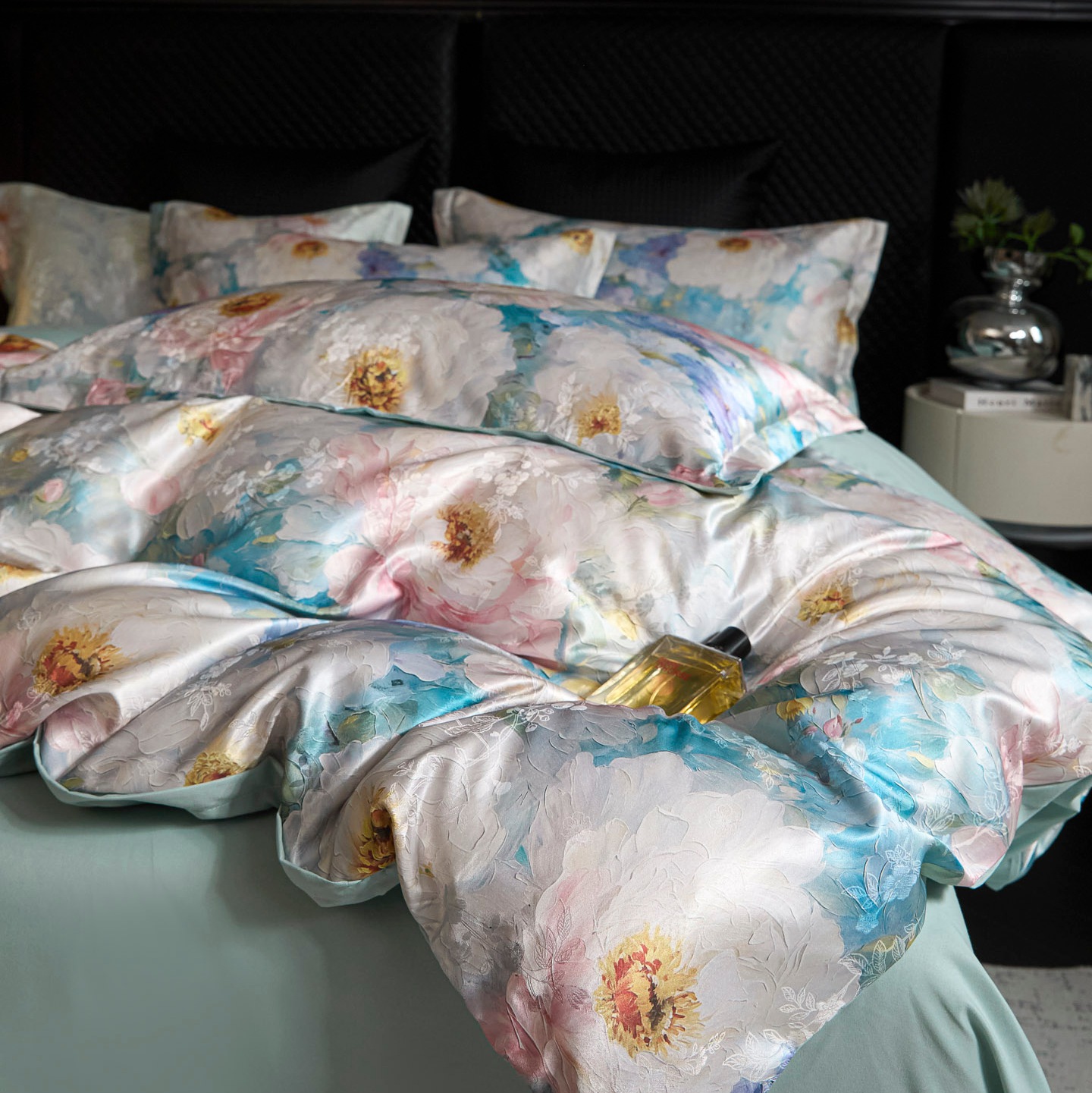 (总)莱欧纳家纺 2025新款质感多色提花四件套,克罗花雨,忆嘉南