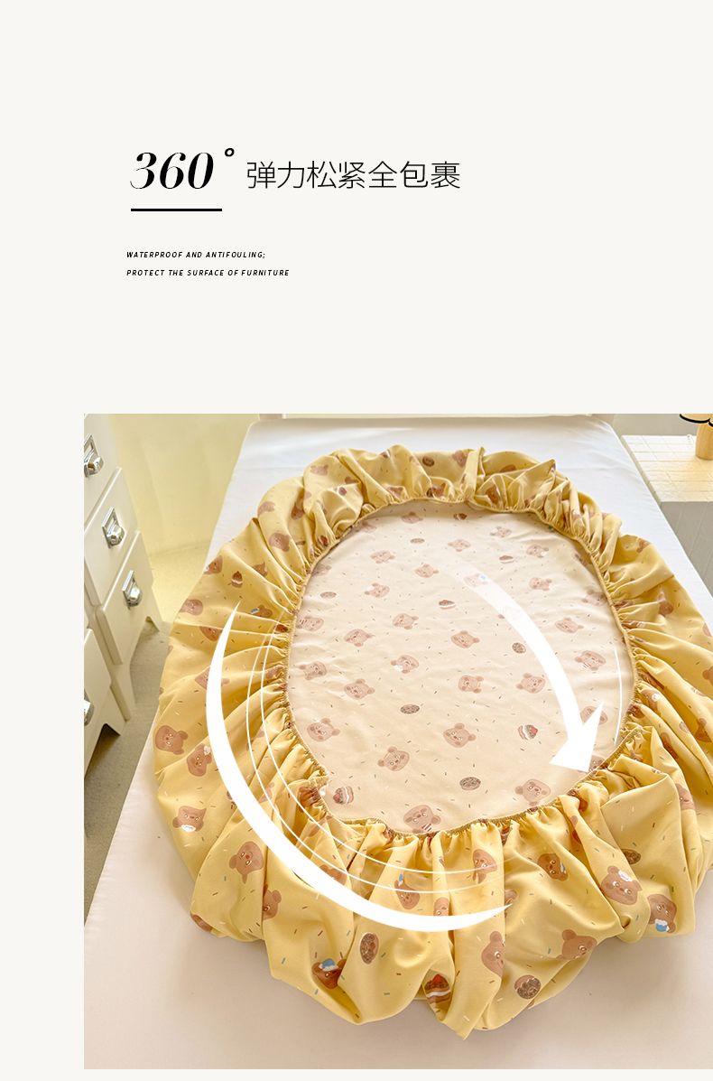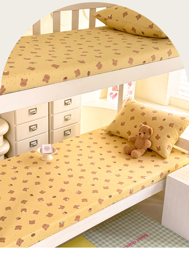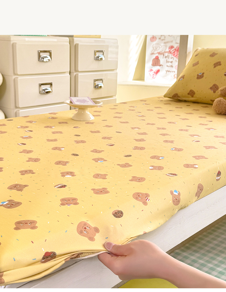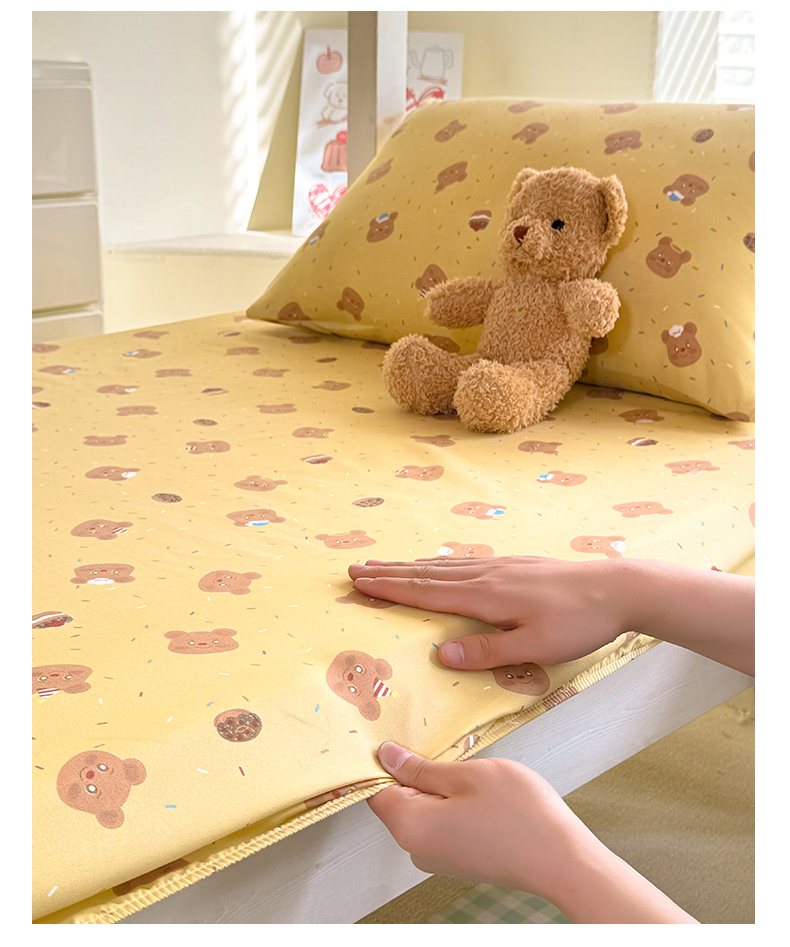 • 91家纺网 家纺一手货源 找家纺 多品家纺 2025春夏新款超柔云感水洗棉单床笠 床笠单件-学生宿舍床 开心熊