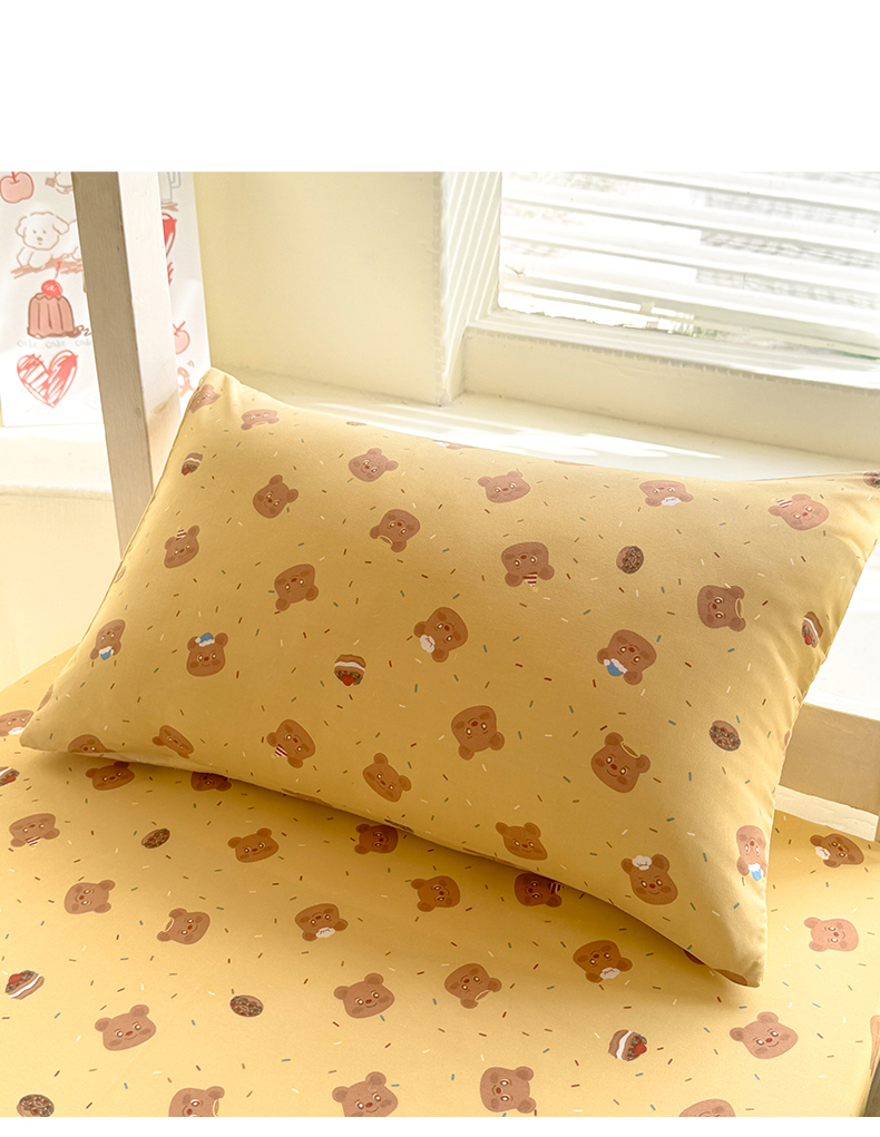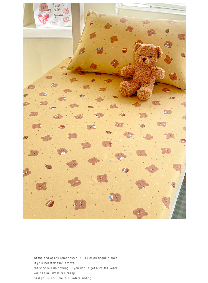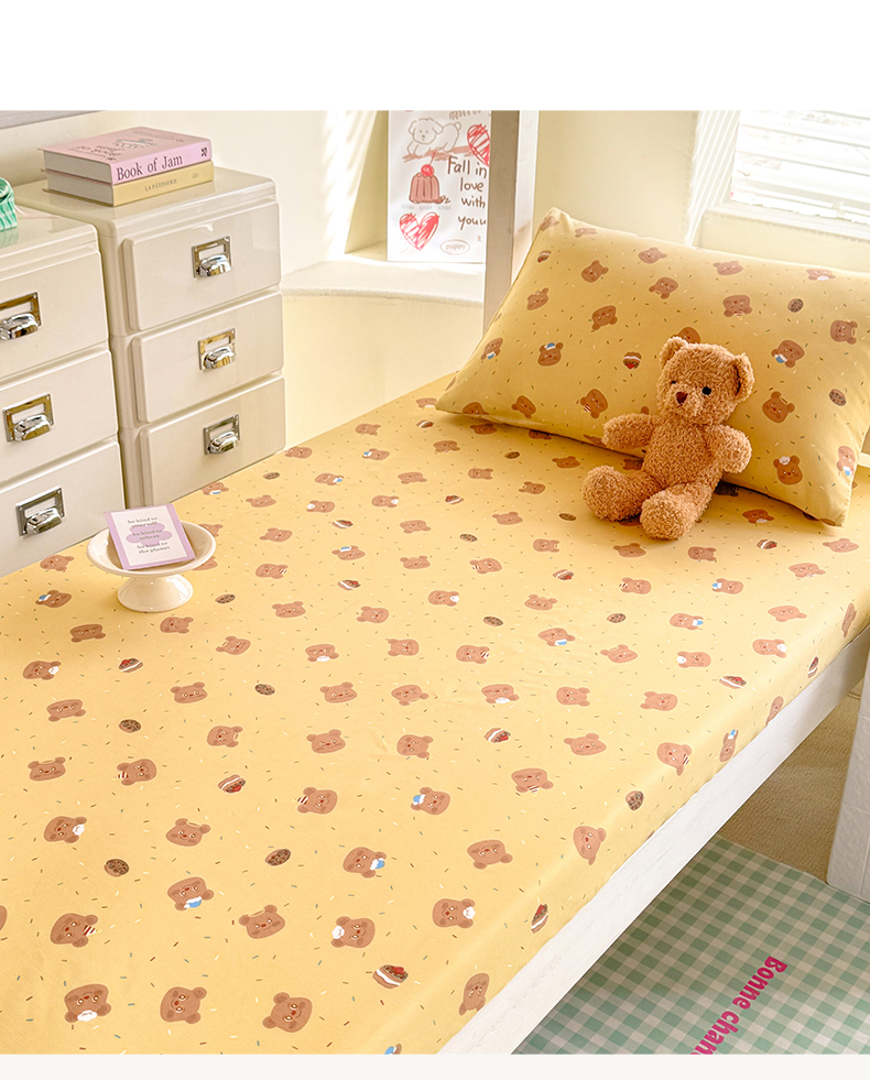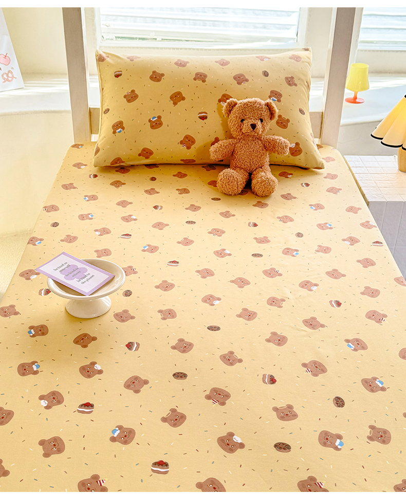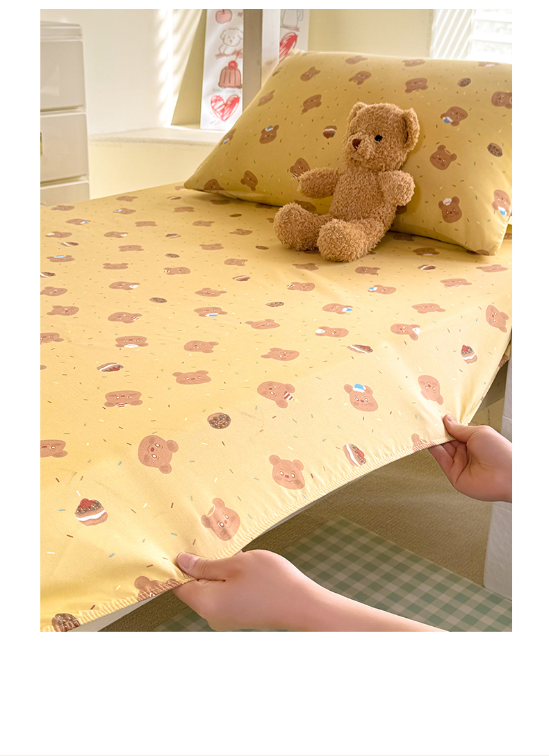 多品家纺 2025春夏新款超柔云感水洗棉单床笠 床笠单件-学生宿舍床 开心熊