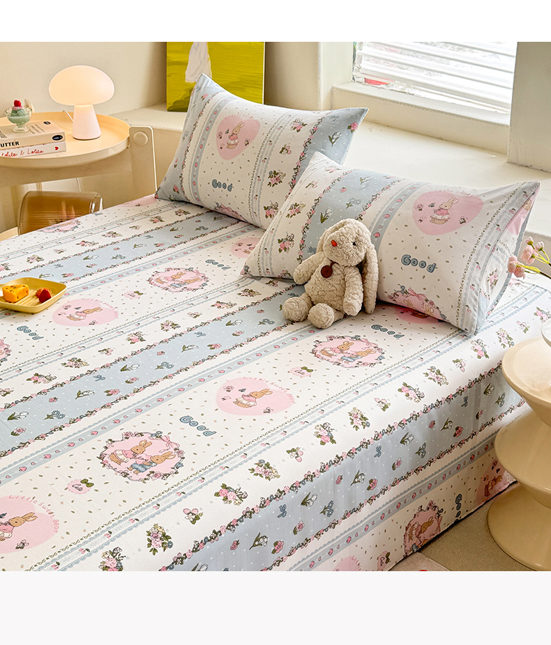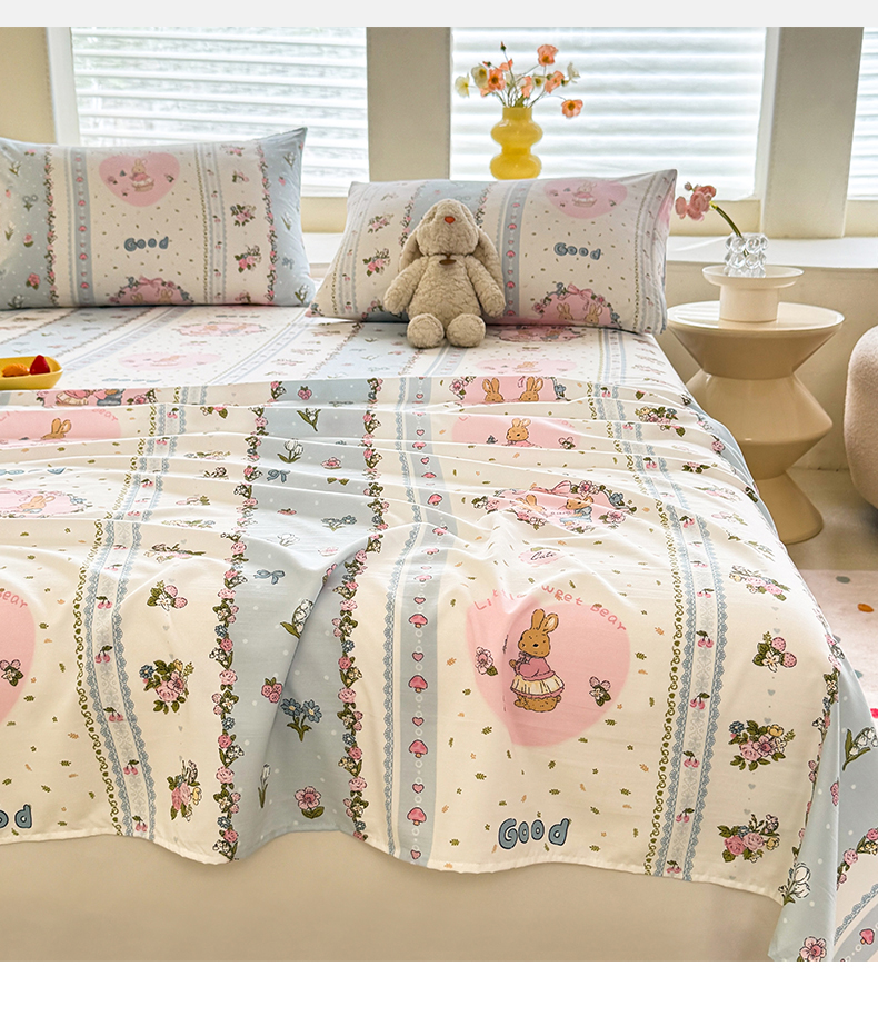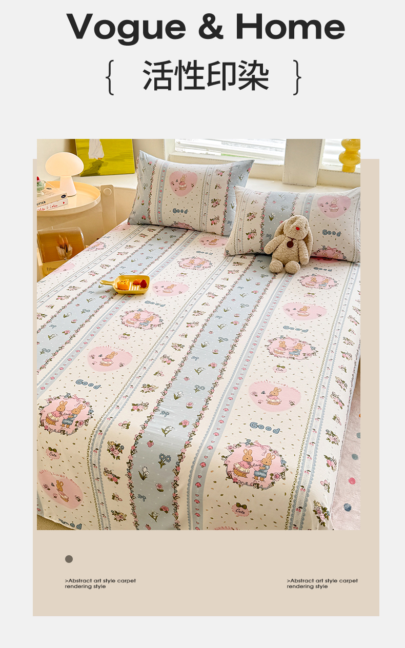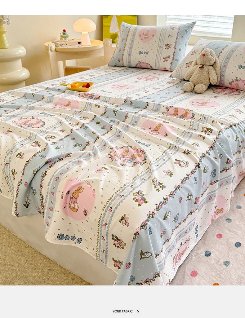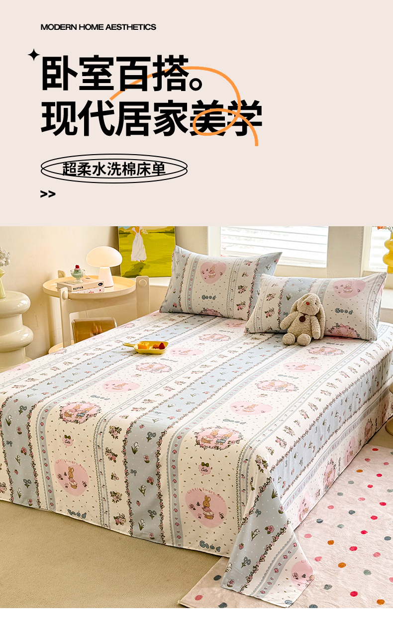 多品家纺 2025春夏新款超柔水洗棉单床单 床单单件 兔兔庄园