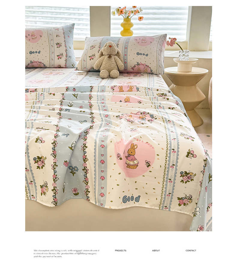 • 91家纺网 家纺一手货源 找家纺 多品家纺 2025春夏新款超柔水洗棉单床单 床单单件 兔兔庄园