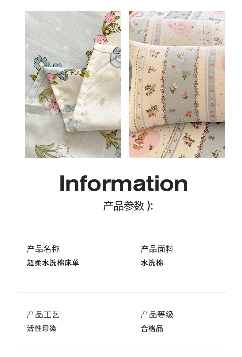 当前位置: 91家纺网 > 商品网购 > 床上用品 > 床单 > 多品家纺 2025春夏新款超柔水洗棉单床单 床单单件 兔兔庄园