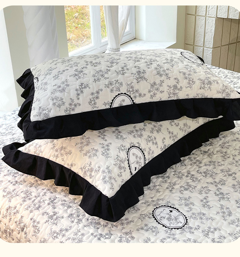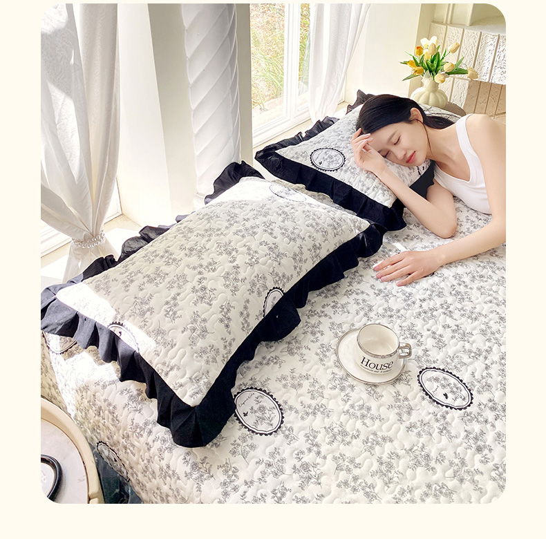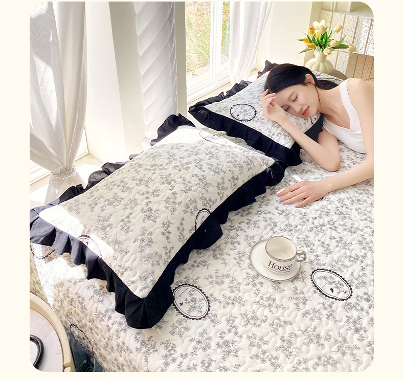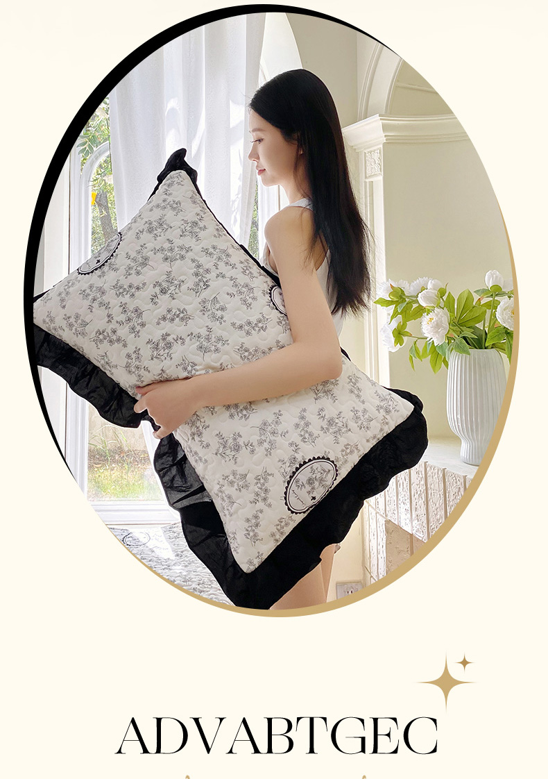 雨彤家纺2025新款赫本风水洗棉夹棉花边枕套 澜音花香