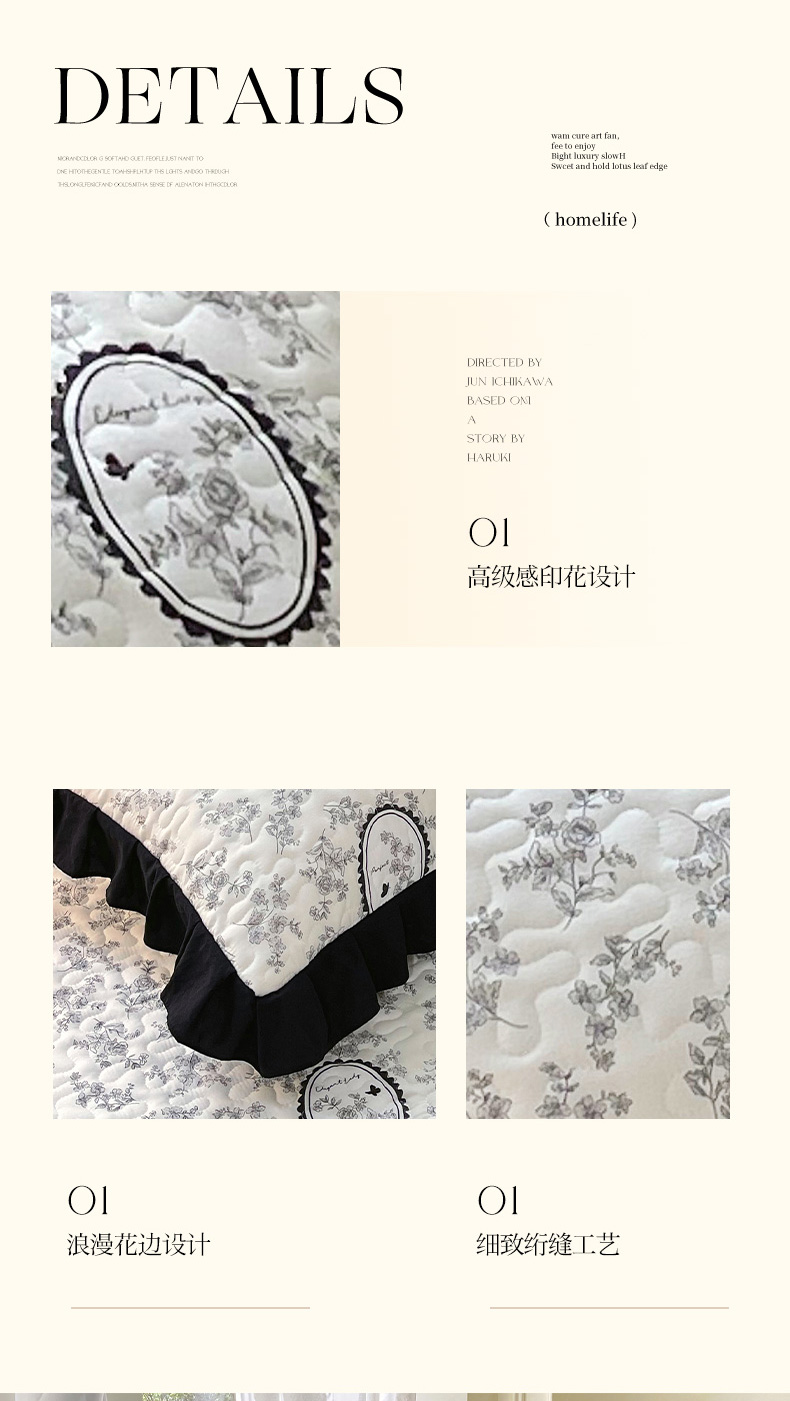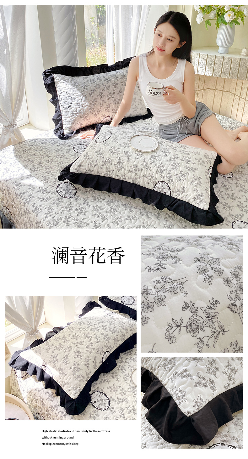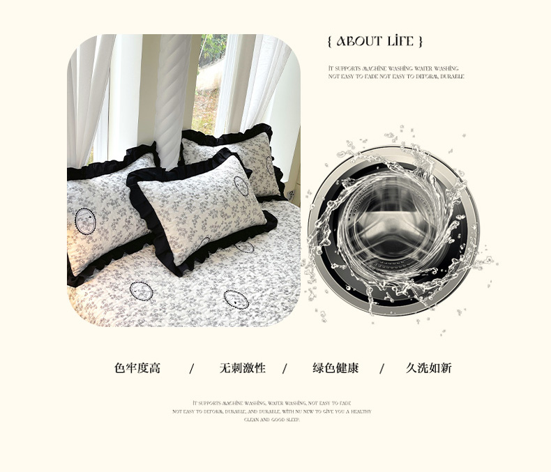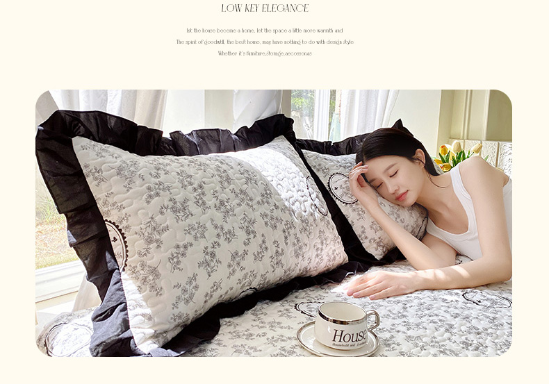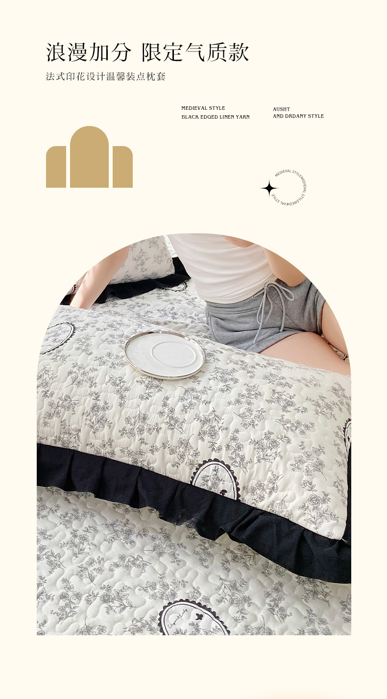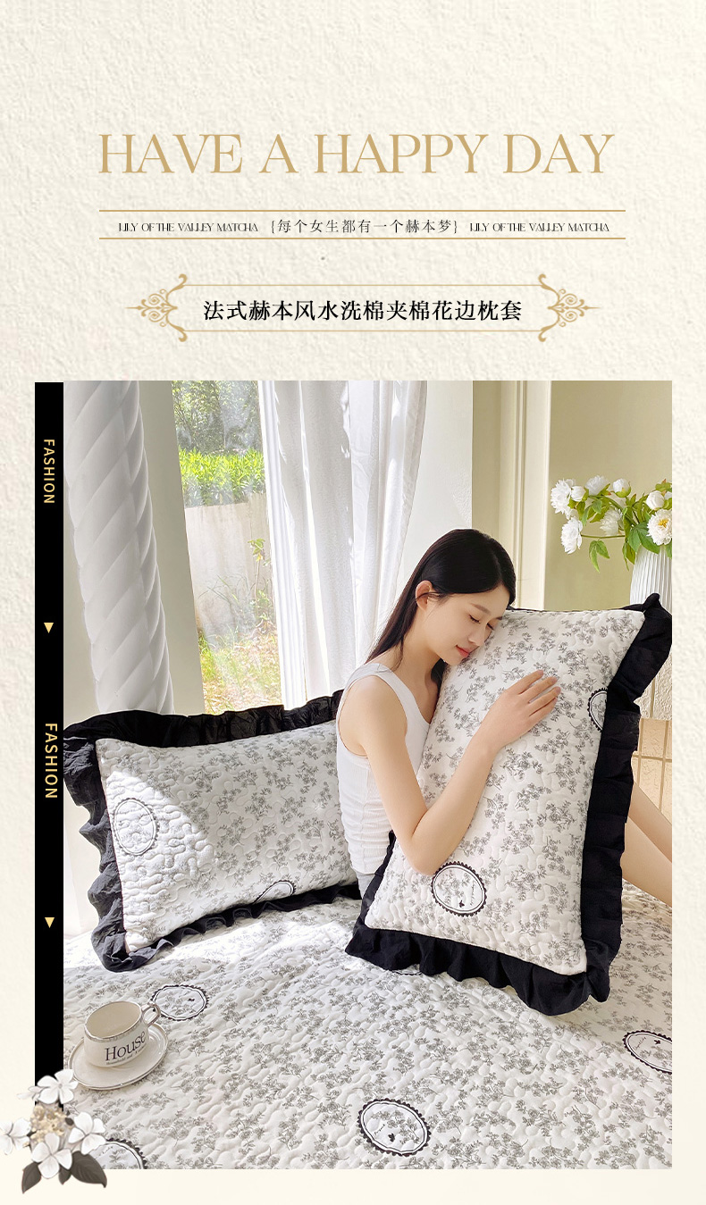 商品名称:雨彤家纺2025新款赫本风水洗棉夹棉花边枕套 澜音花香