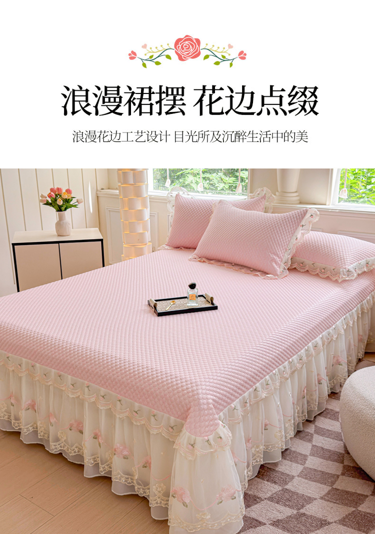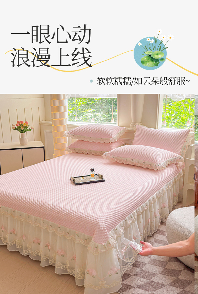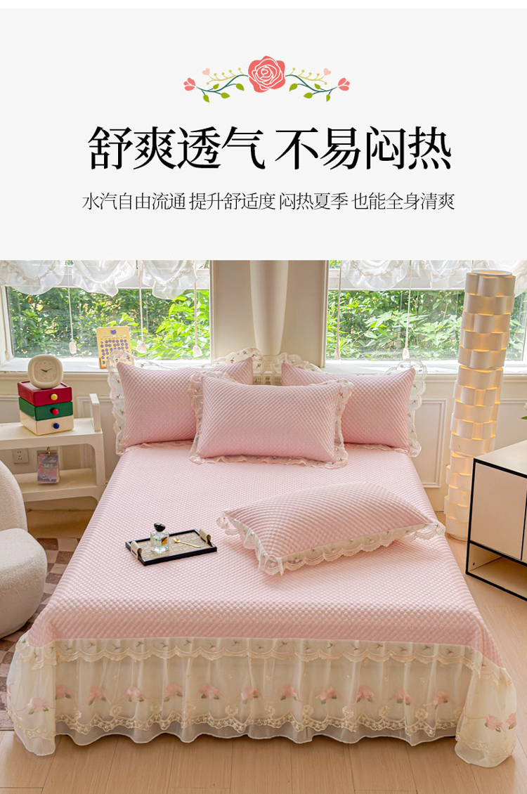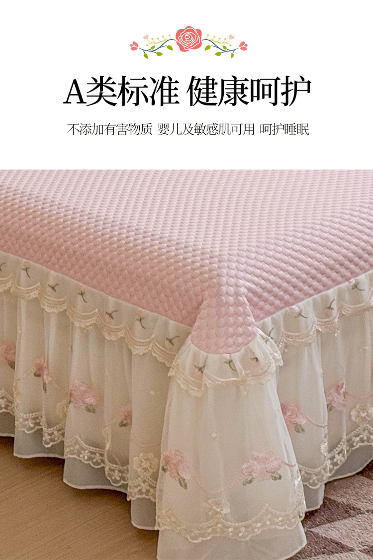 漫布云2025甄选A类凉豆豆纯色系蕾丝花边床裙款床单款床盖床单凉席三件套蕾丝床盖款凉席三件套 唯爱-婴儿蓝