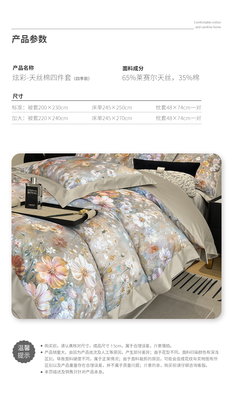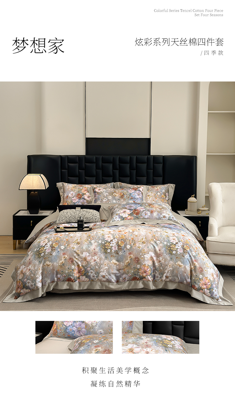 商品名称:元元家居(元元被业) 2026新款天丝棉四季款四件套-炫彩系列 梦想家