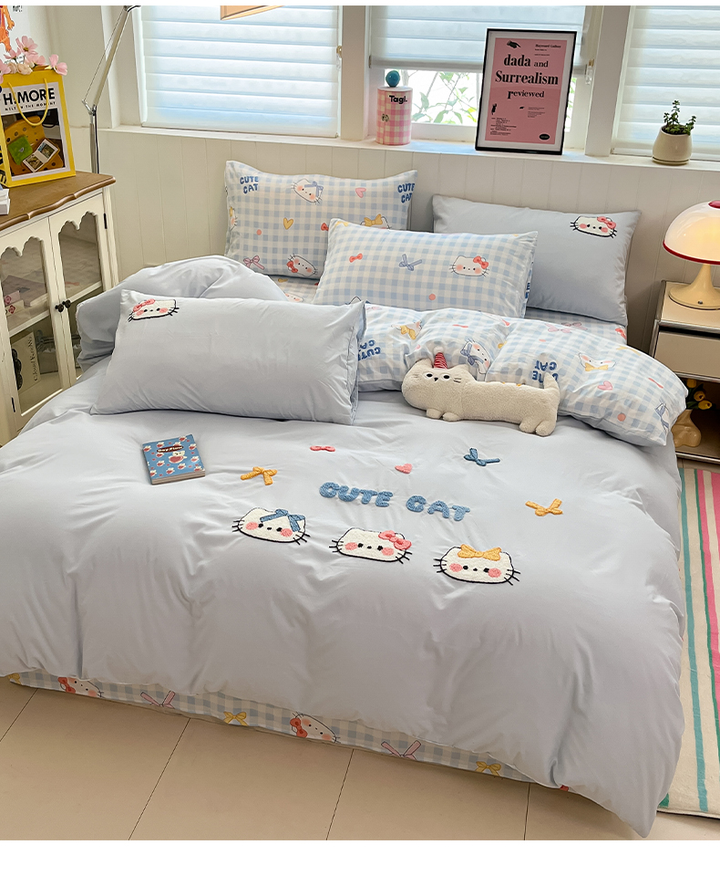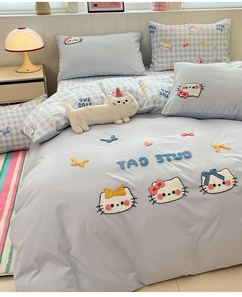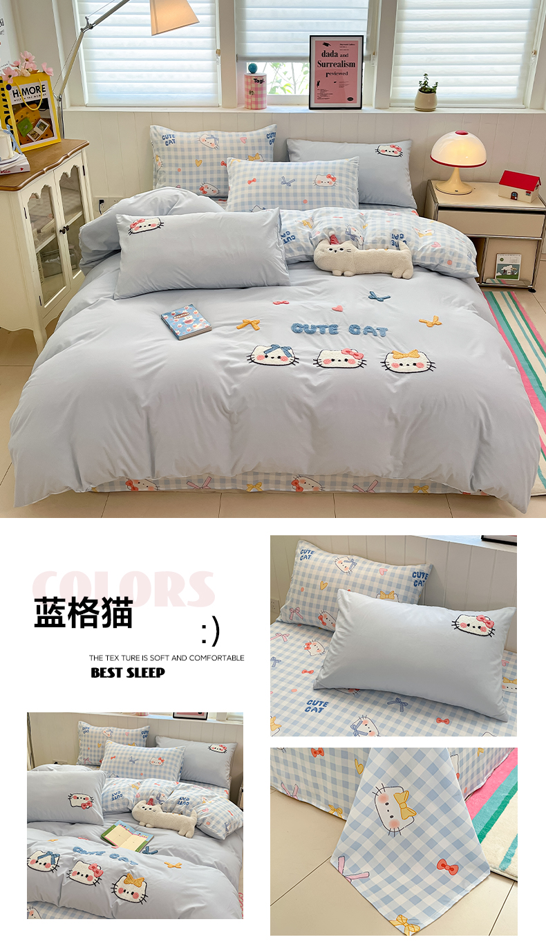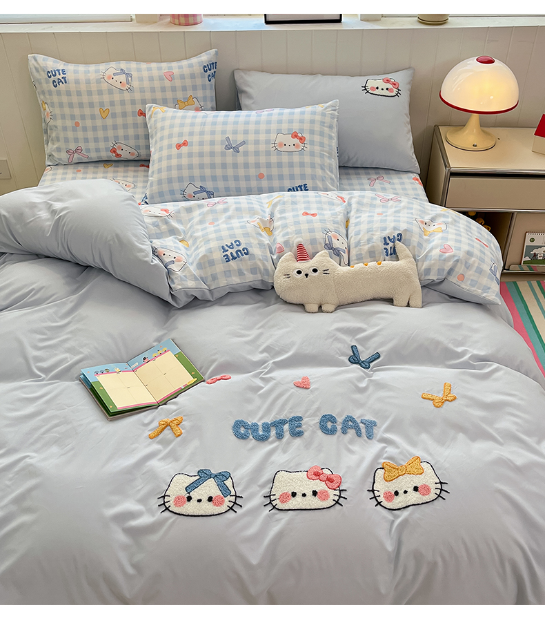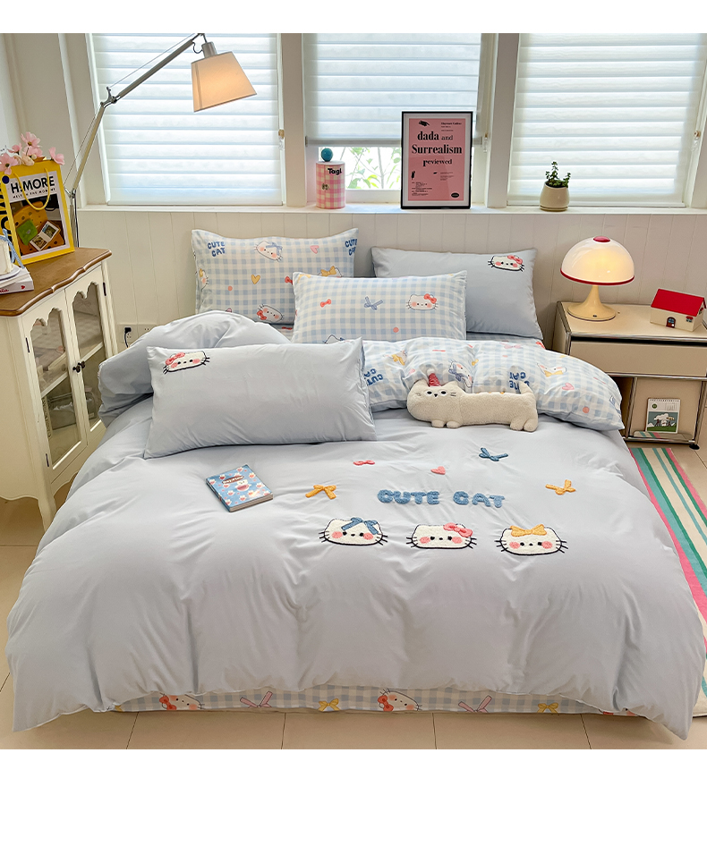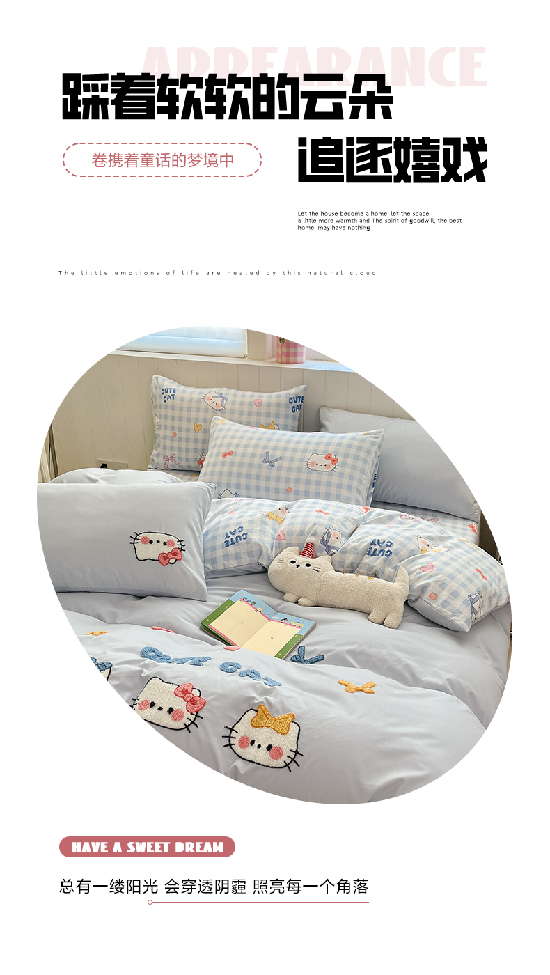 商品名称:如一 2025新款A类卡通印加毛巾绣水洗云朵棉四件套(提供买家秀) 蓝格猫