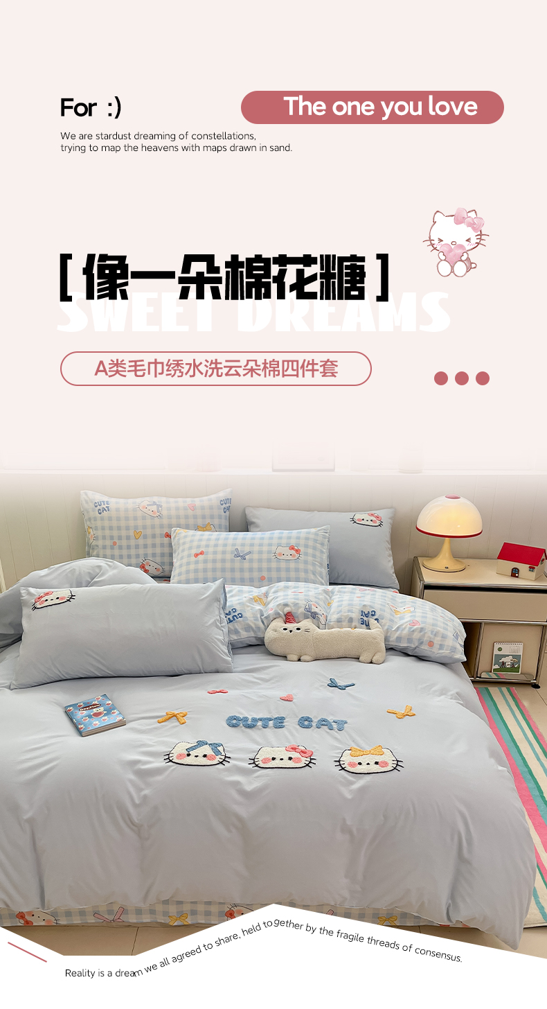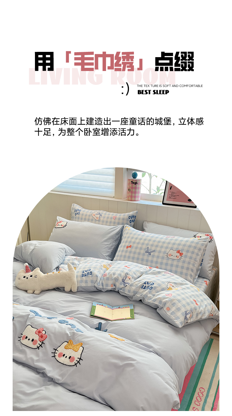 如一 2025新款A类卡通印加毛巾绣水洗云朵棉四件套(提供买家秀) 蓝格猫