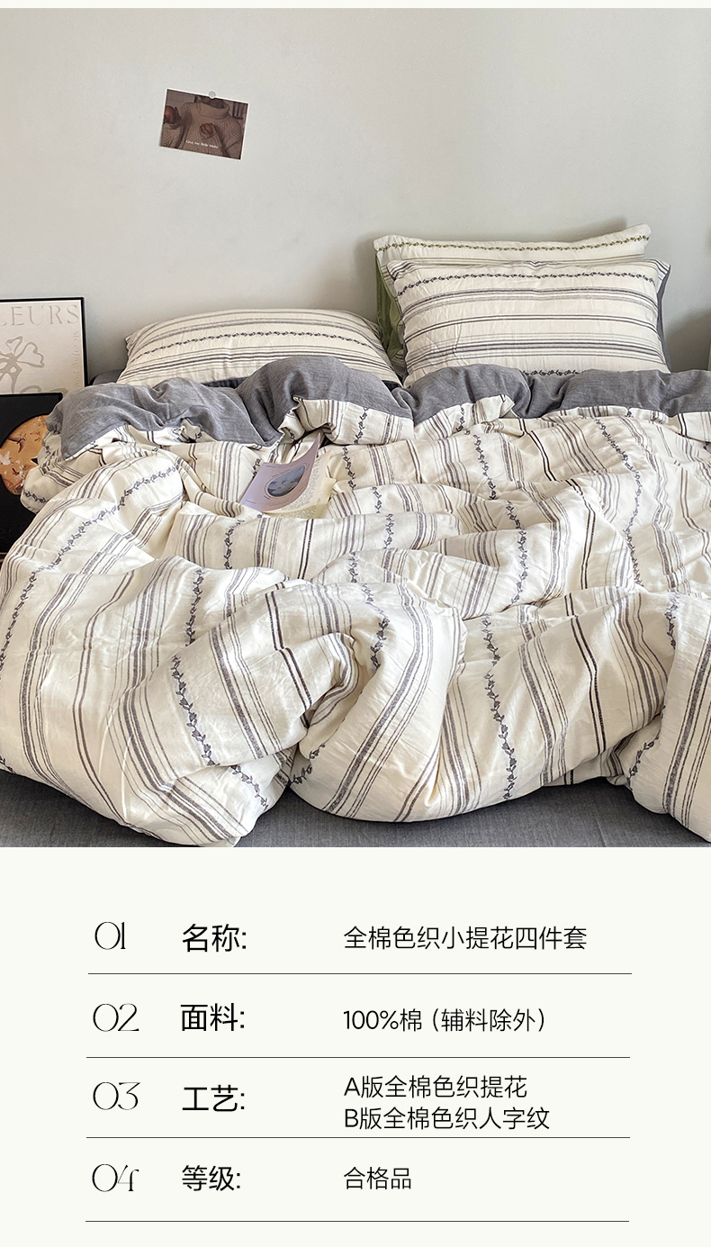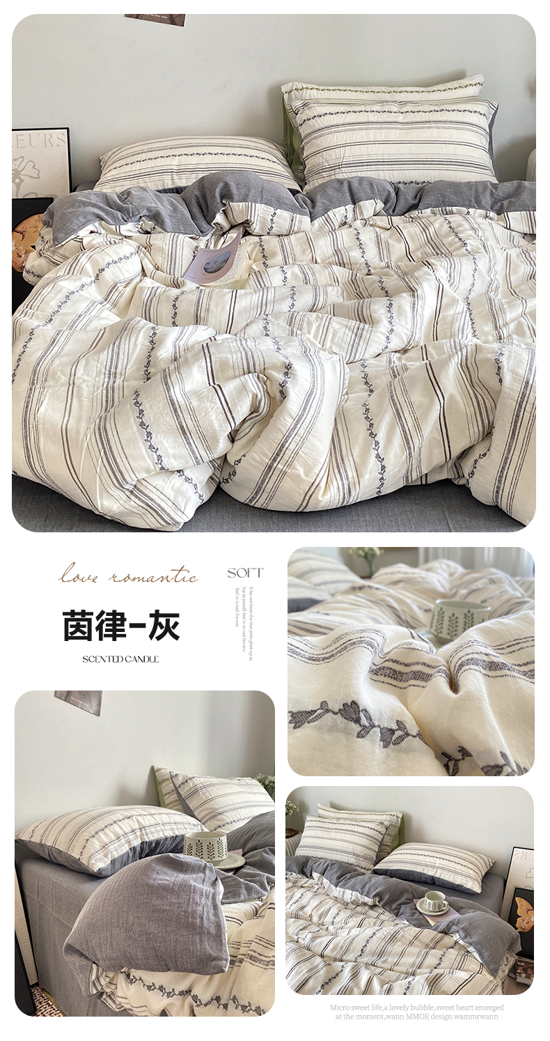 当前位置: 91家纺网 > 商品网购 > 床品套件 > 四件套 > 全棉普通四件套 > 艾咪-Amy ntmy 2025新款全棉色织小提花四件套-茵律 茵律-灰