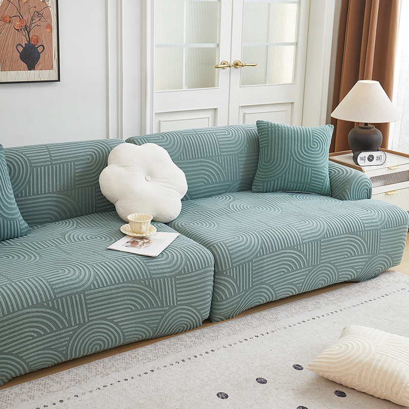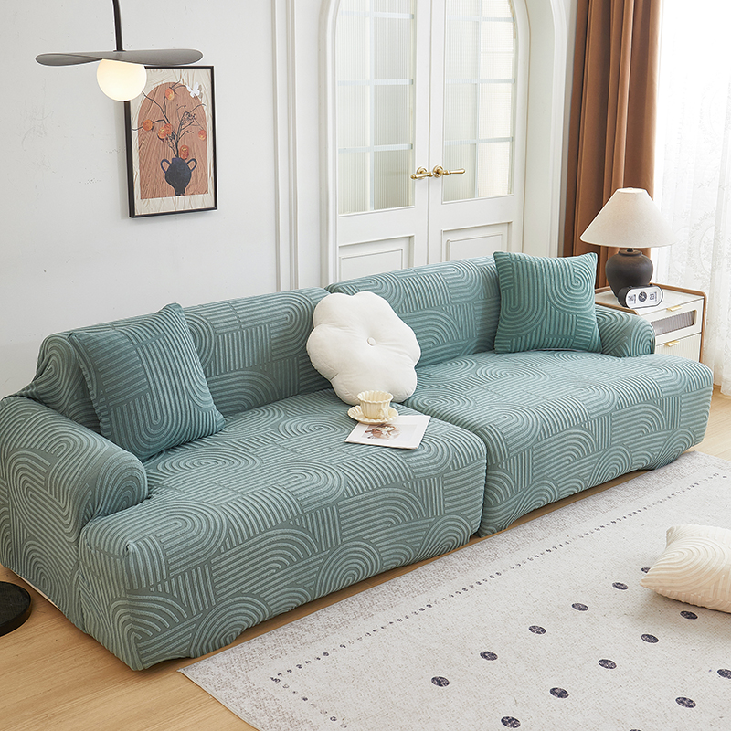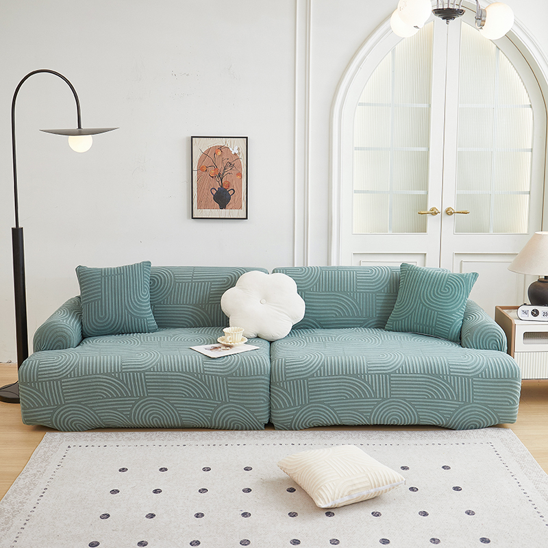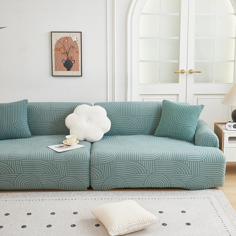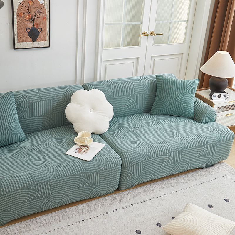 丝绮鹿 2025新款圆满沙发套(直排松紧款) 清雅绿
