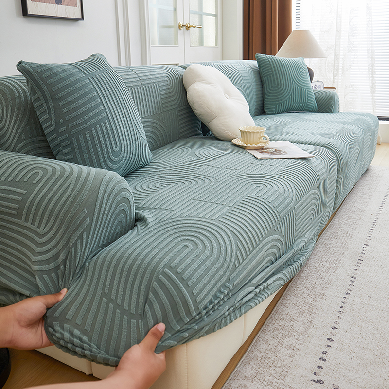 商品名称:丝绮鹿 2025新款圆满沙发套(直排松紧款) 清雅绿