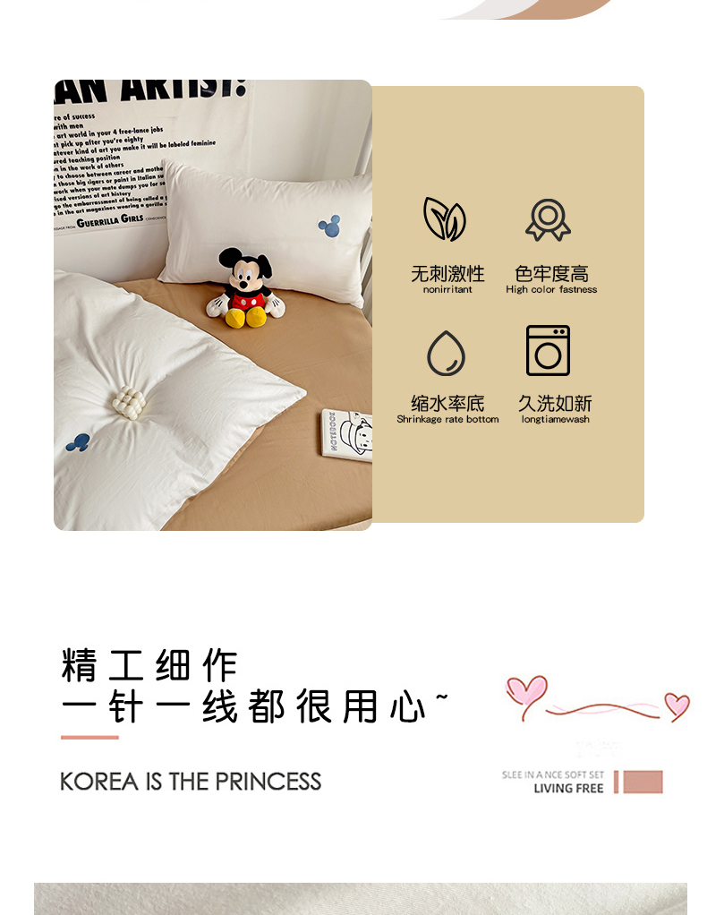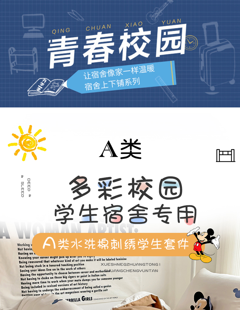商品名称:(总)静家居-简约原创家纺 2025新款40sA类水洗棉米奇刺绣系列学生三件套