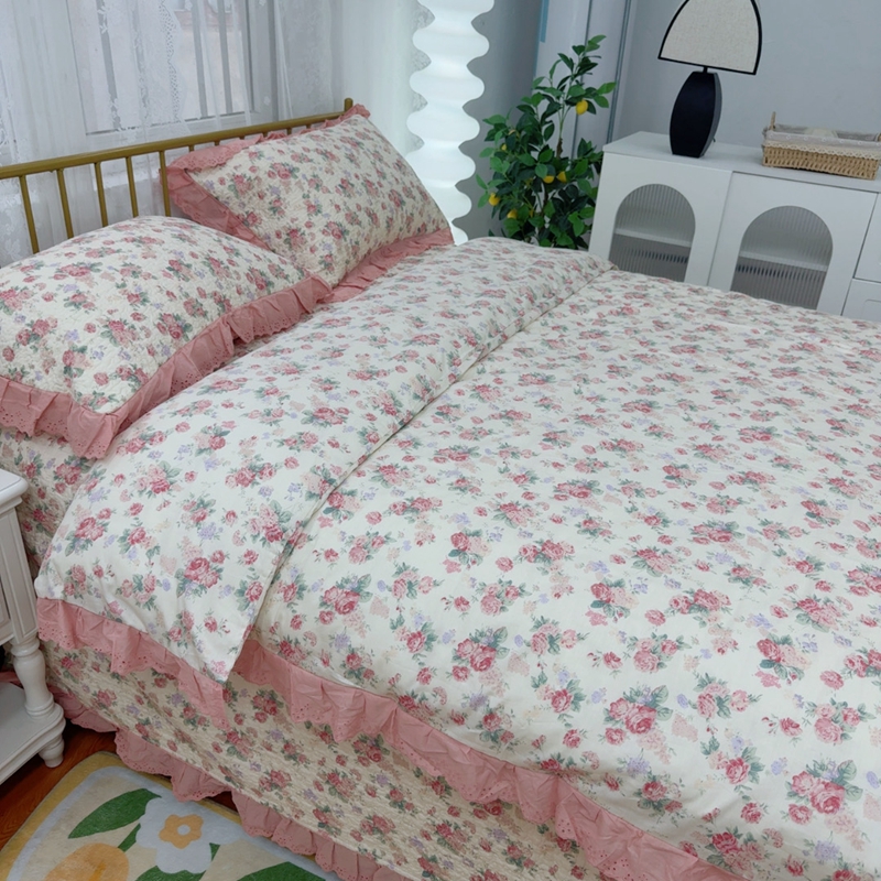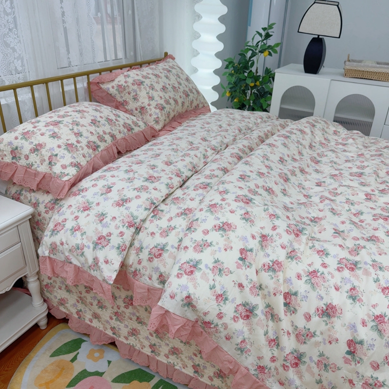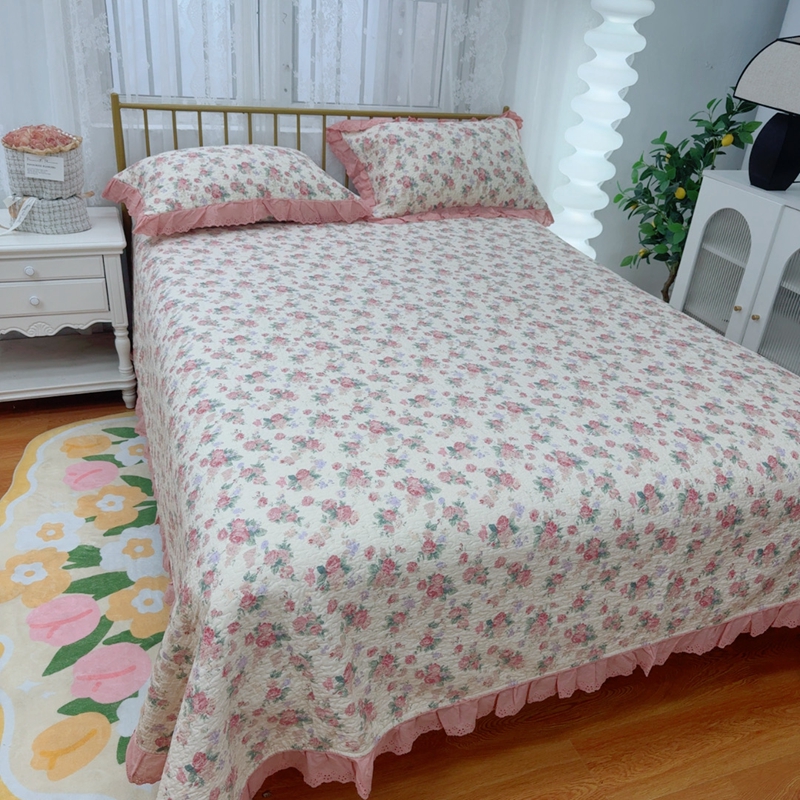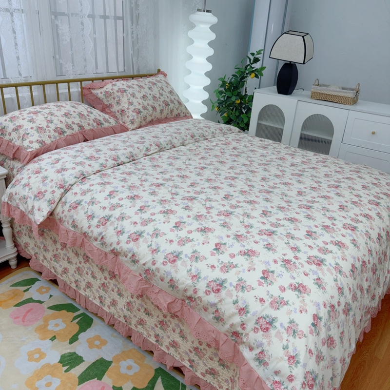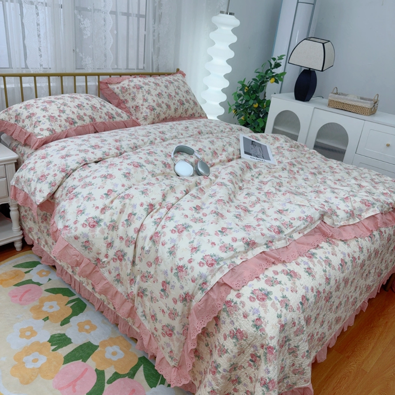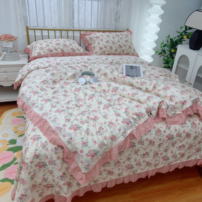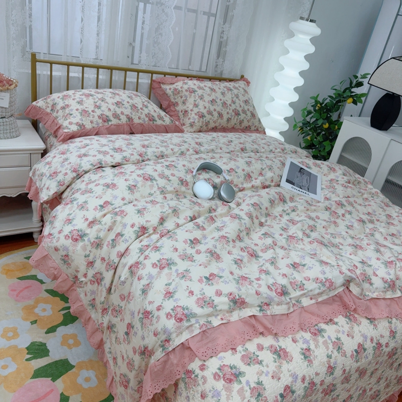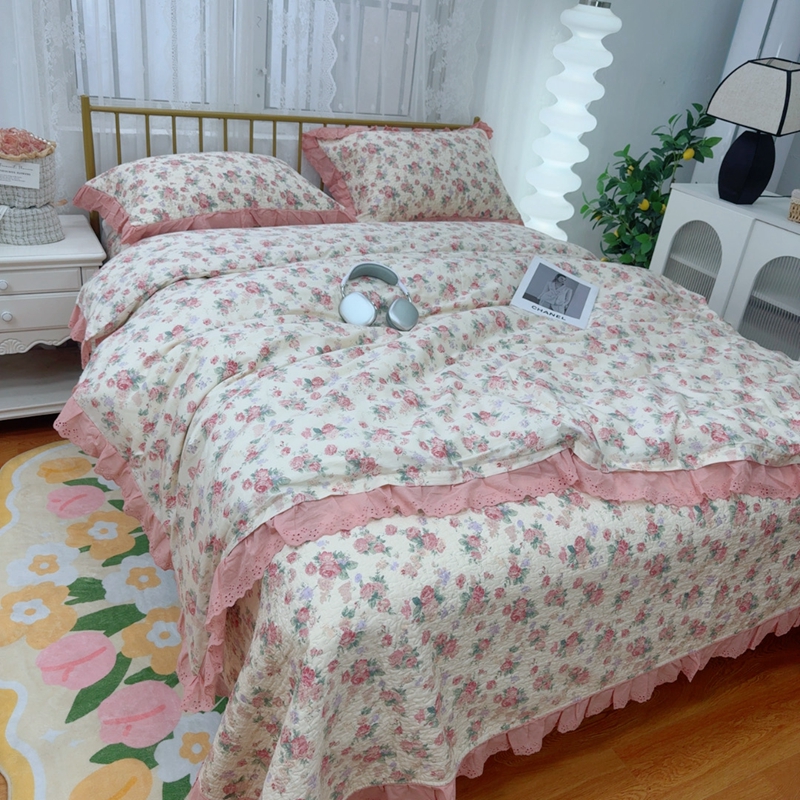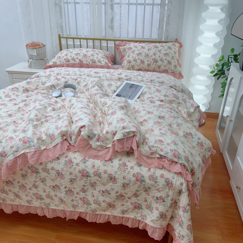 商品名称:暖居 2025春夏款高温砂洗棉花床盖三件套被套四件套同款纯棉夏被空调被四季 悠然花香