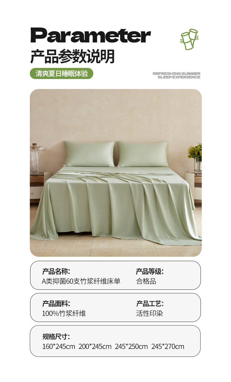 商品名称:轩和家居 2025新款天竹60支竹浆纤维A类婴幼儿级别天然抗菌抑菌系列床单单件-单床单 天蓝