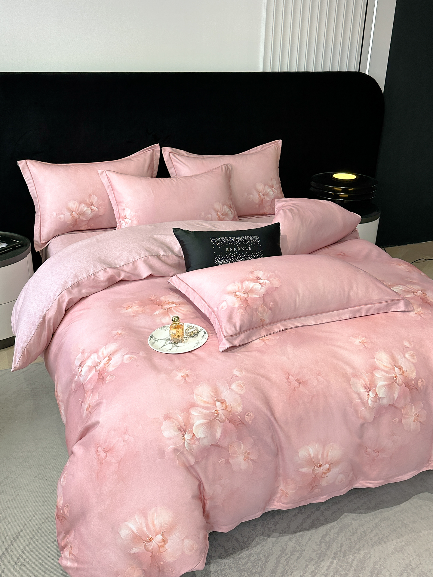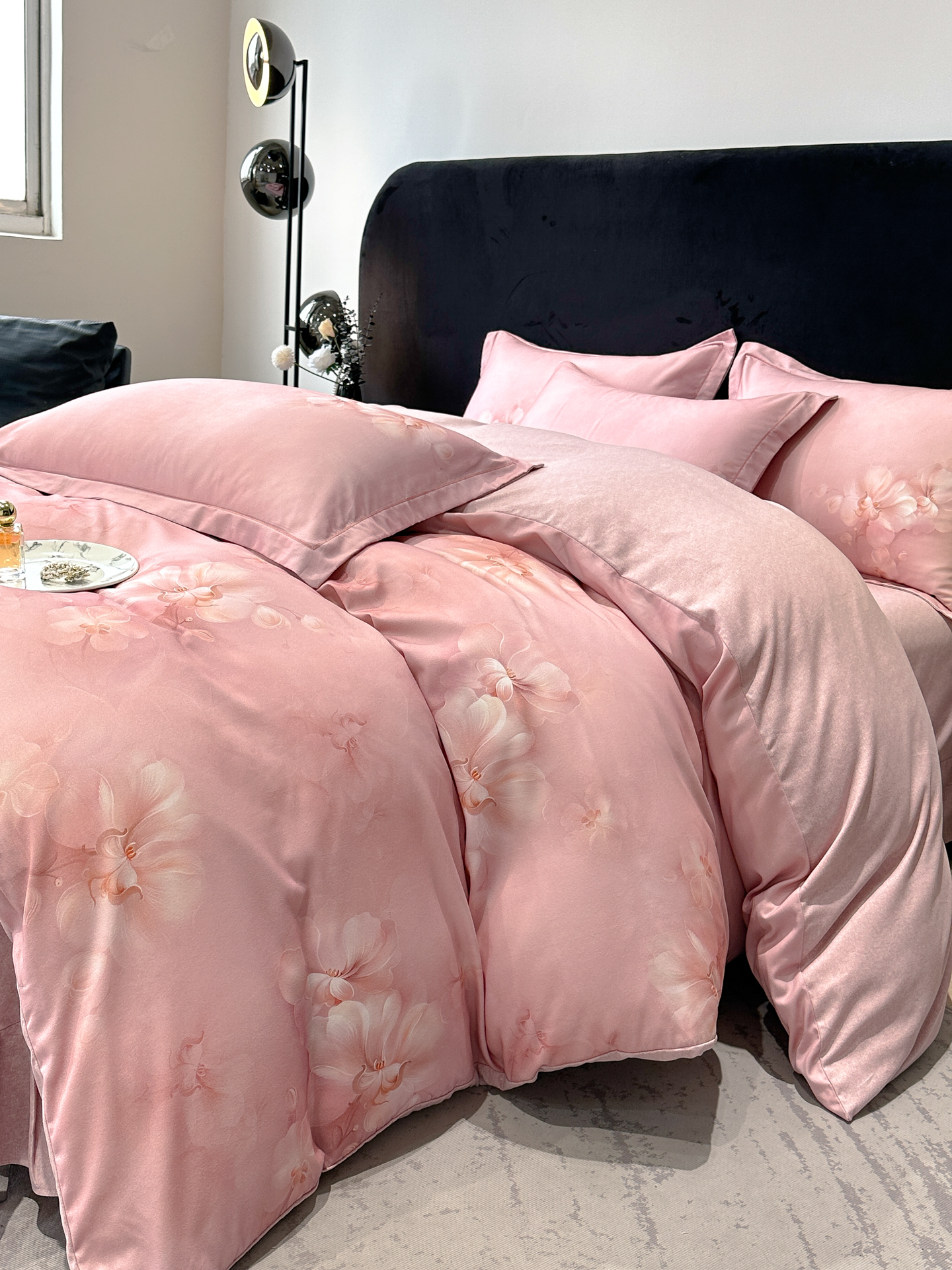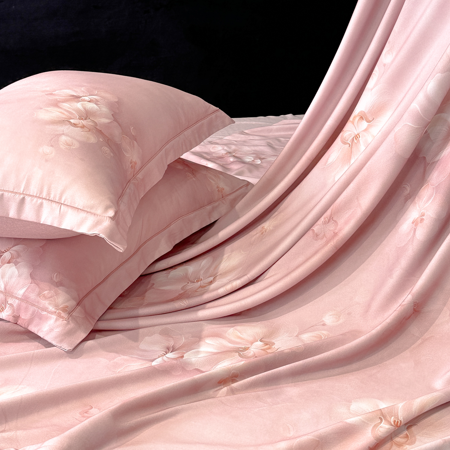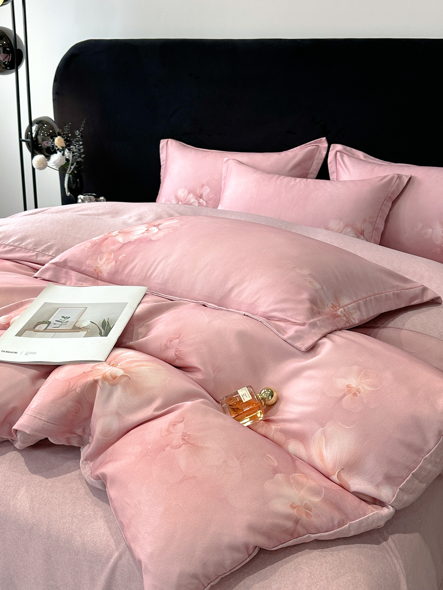 喜四方 2025新款加厚天丝棉磨毛数码印花四件套 爱之花舍-粉