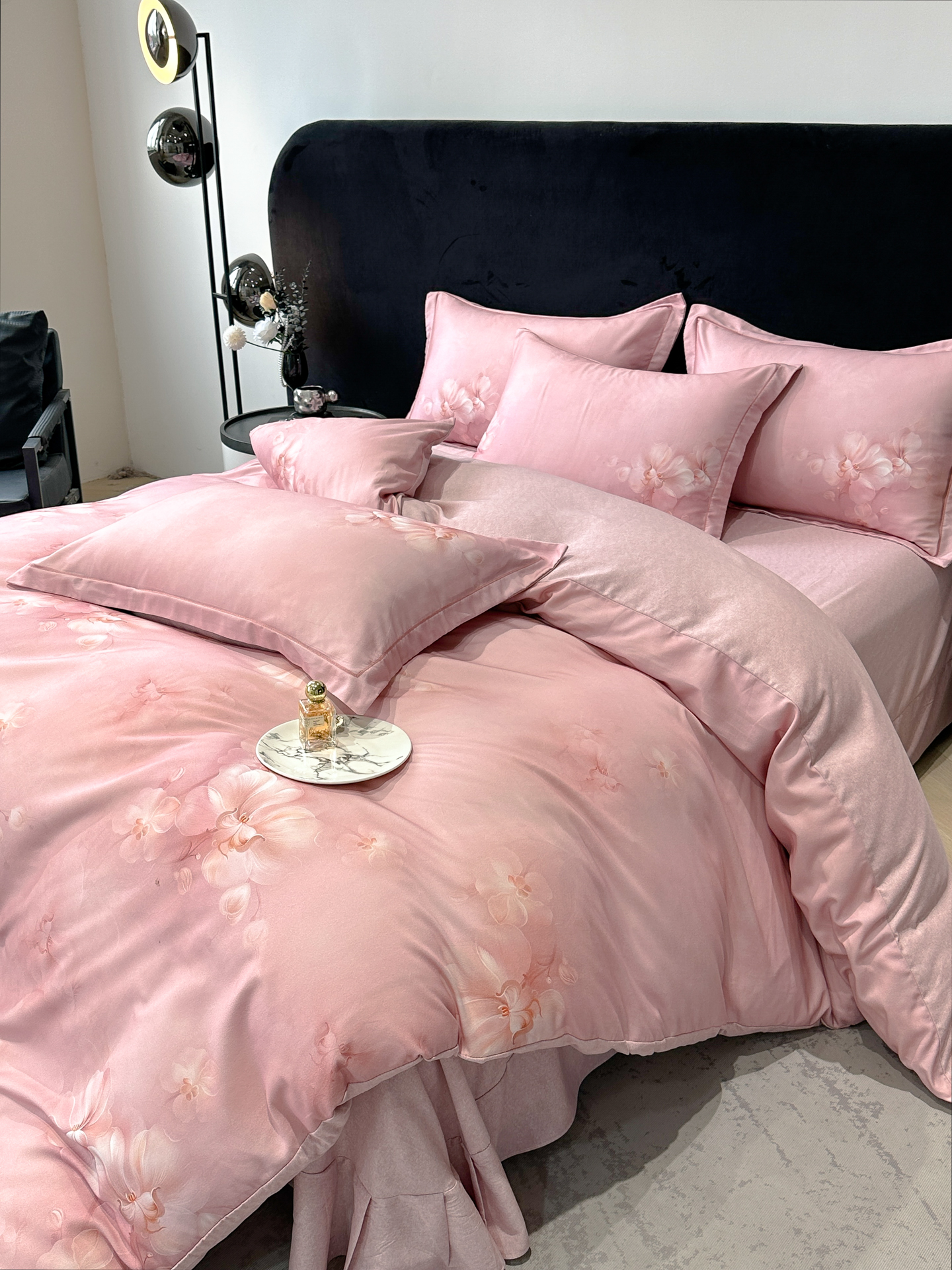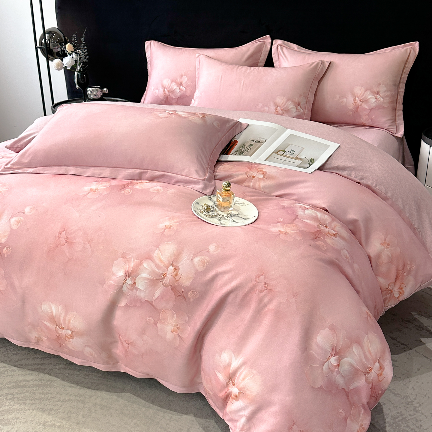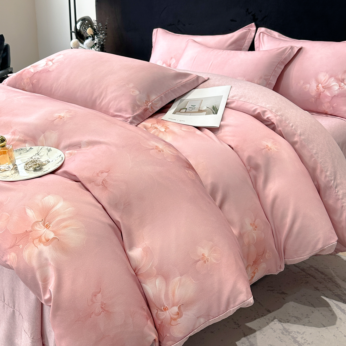 商品名称:喜四方 2025新款加厚天丝棉磨毛数码印花四件套 爱之花舍-粉