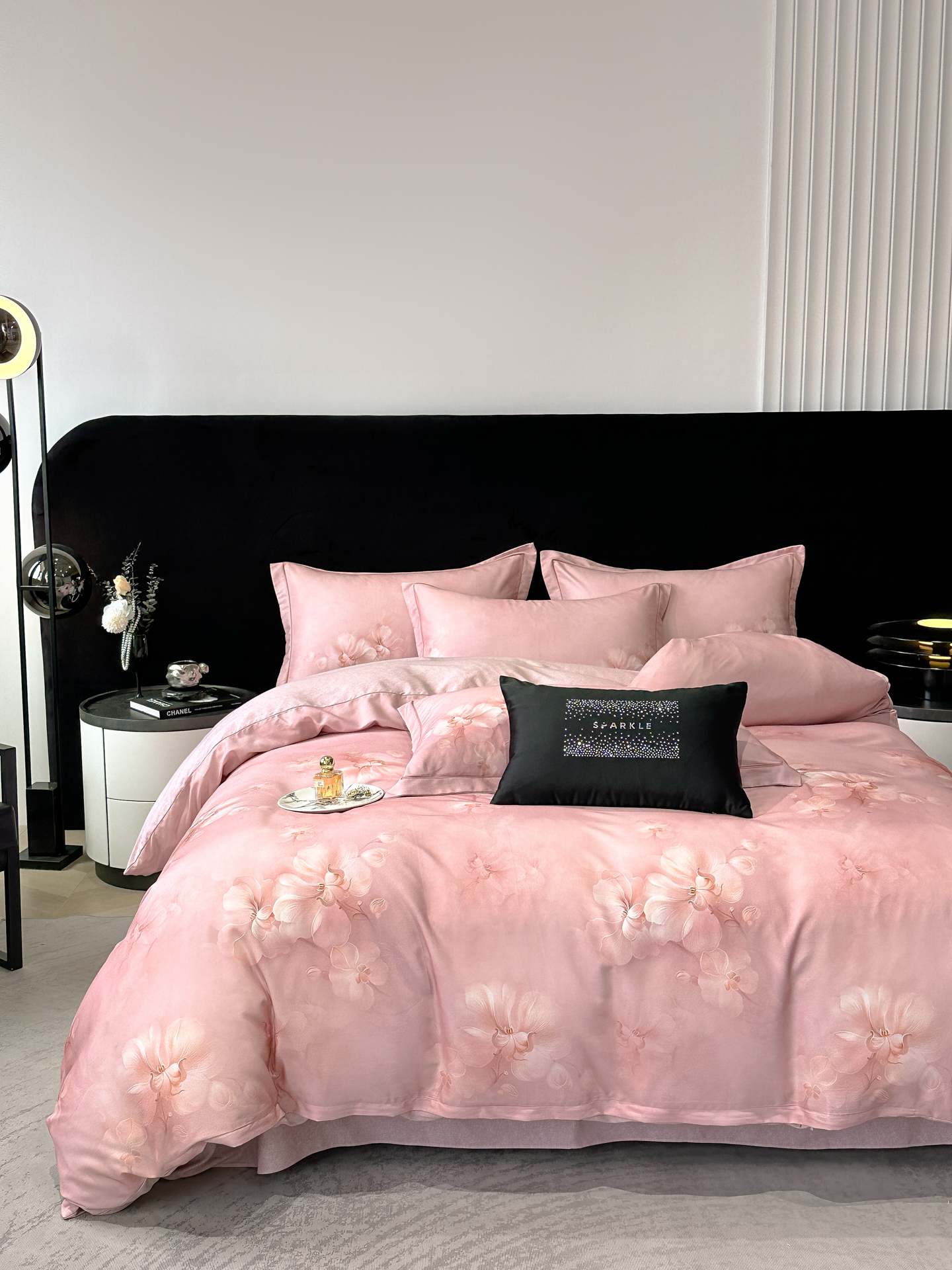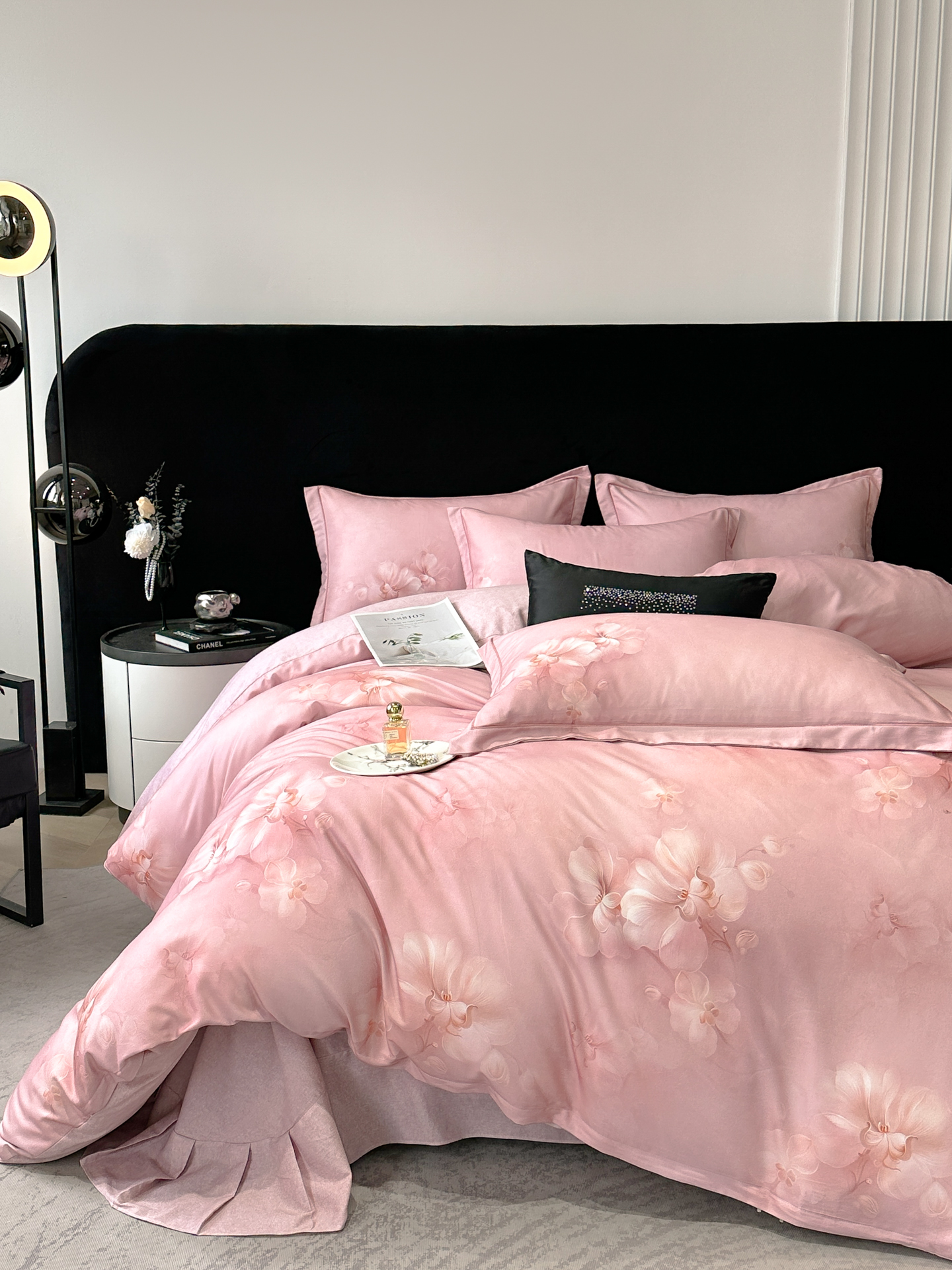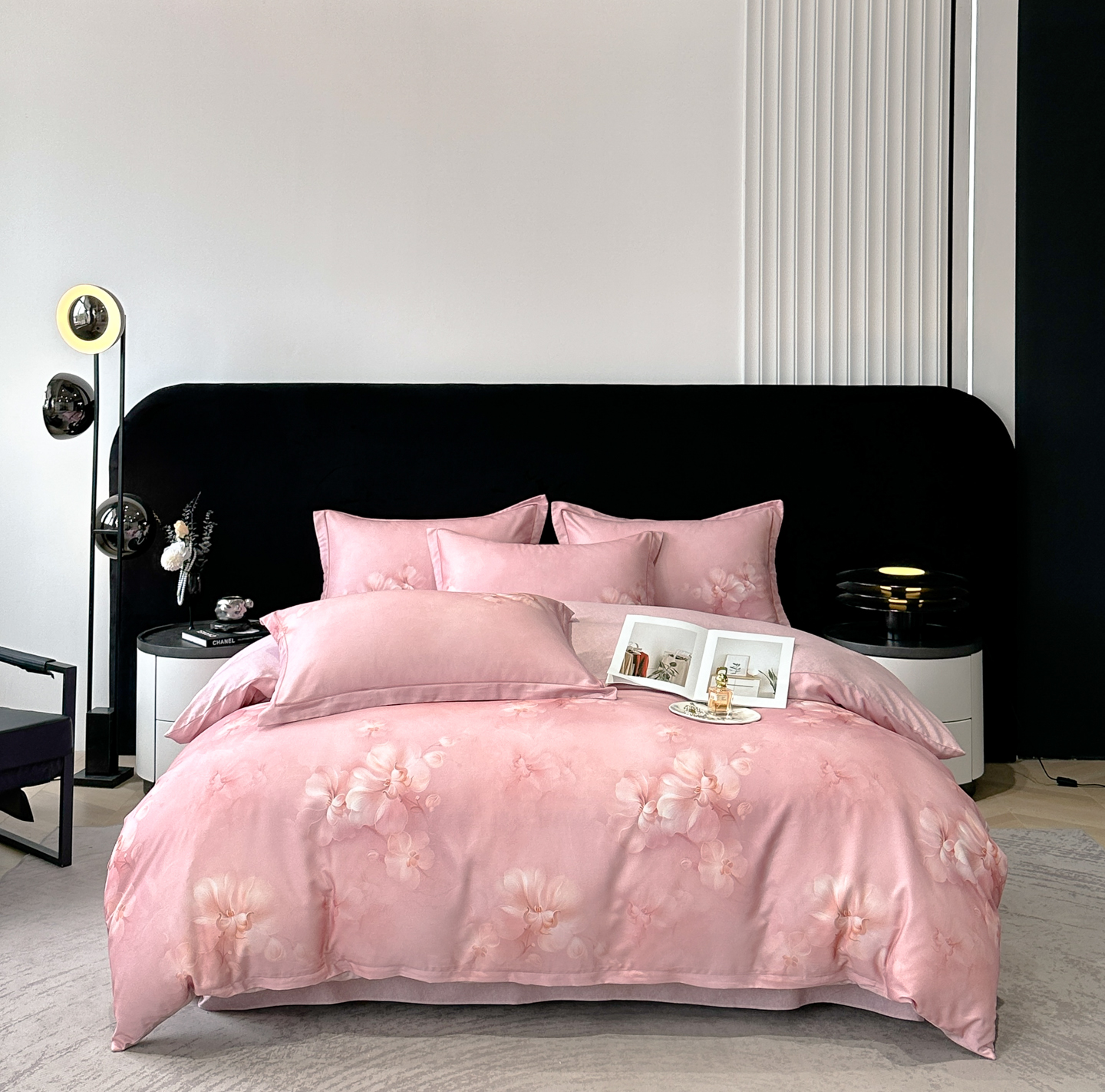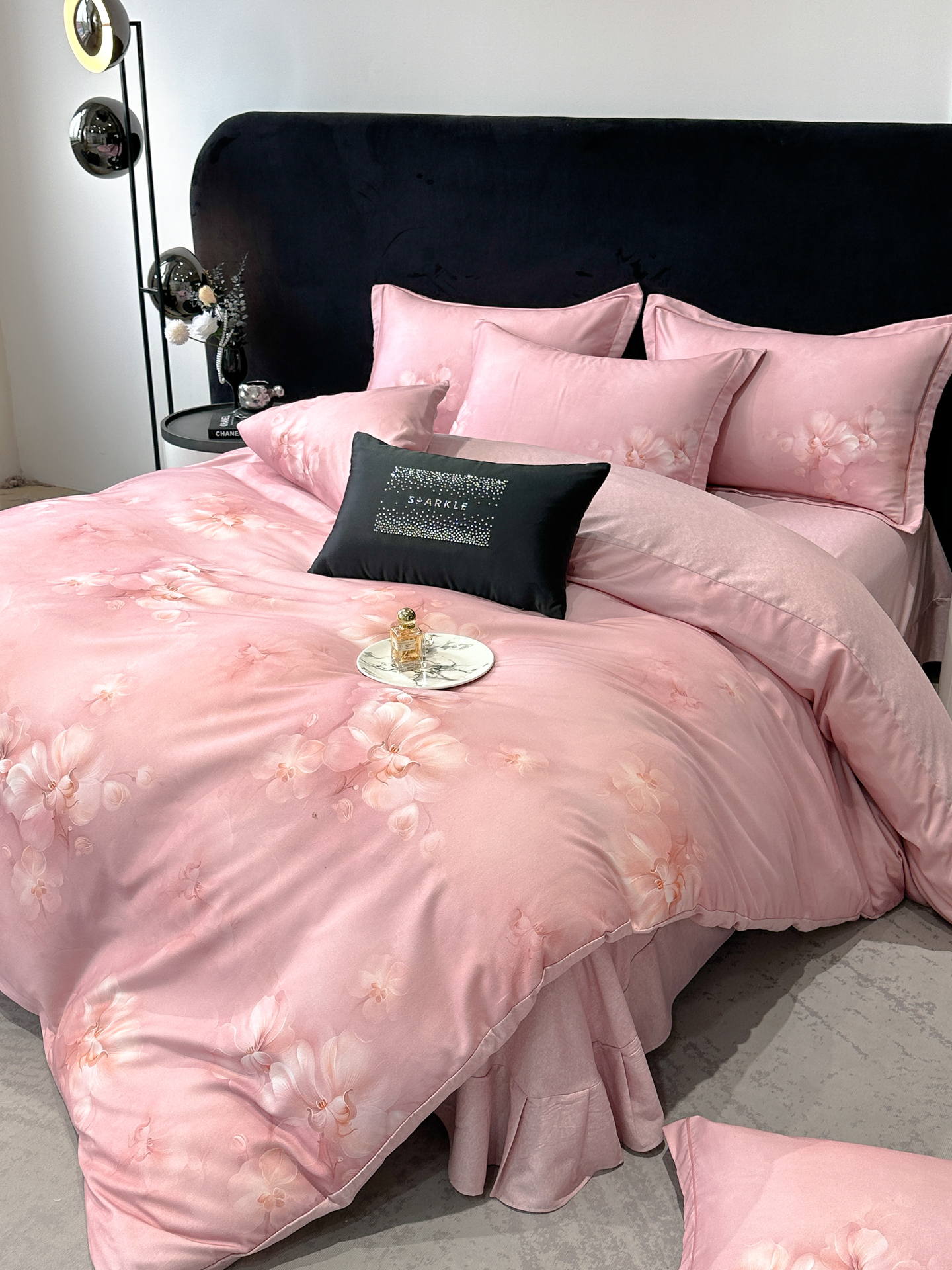 商品名称:喜四方 2025新款加厚天丝棉磨毛数码印花四件套 爱之花舍-粉