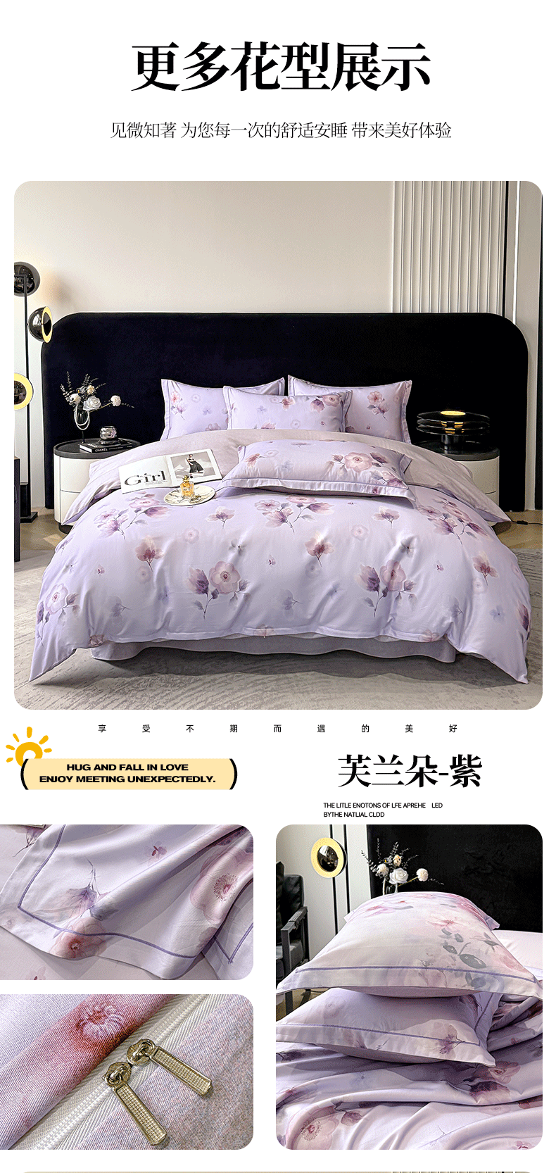 商品名称:喜四方 2025新款加厚天丝棉磨毛数码印花四件套 素唯-紫