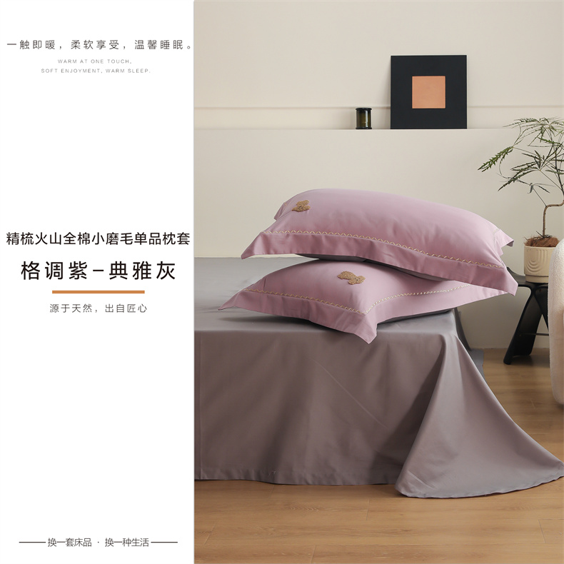 禾时2025新款精梳火山全棉小磨毛工艺单品枕套 格调紫丨典雅灰