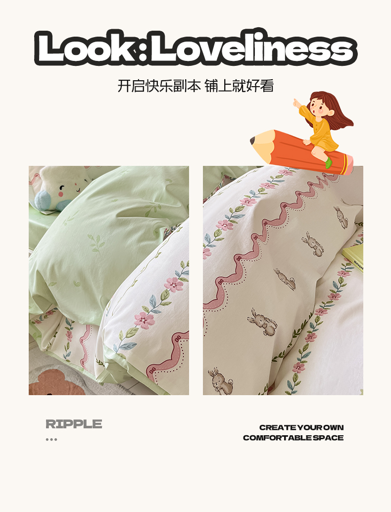 当前位置: 91家纺网 > 商品网购 > 床品套件 > 三件套 > 涵宸家纺 2025新款学生图-全棉印花-ins印花三件套四件套 辛德瑞拉