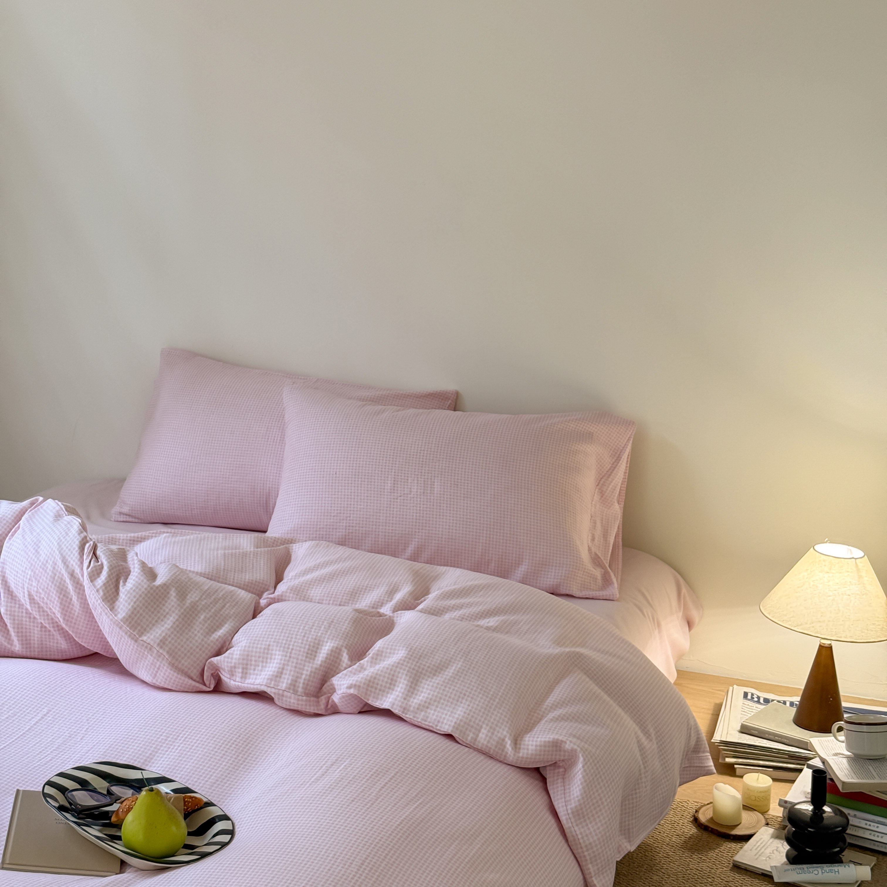 当前位置: 91家纺网 > 商品网购 > 床品套件 > 四件套 > 双层纱四件套 > 窝米 2025新品全棉纯棉双层纱简约条格四件套系列第一组 致在-红