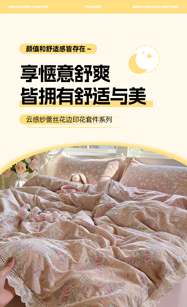商品名称:(总)Mata蔓塔家 2025新款云感双层纱全棉镂空花边四件套