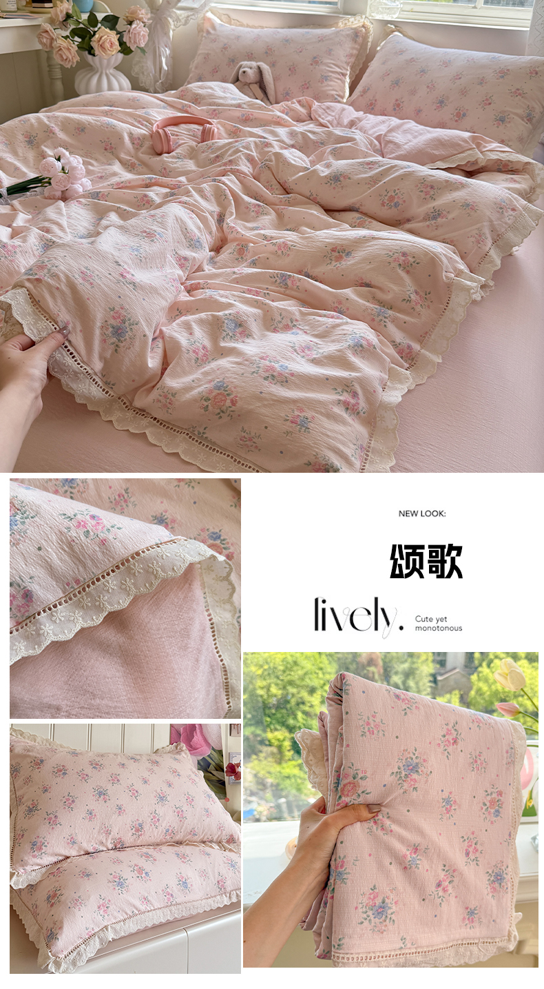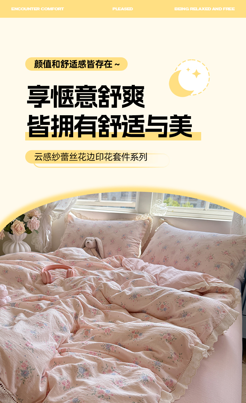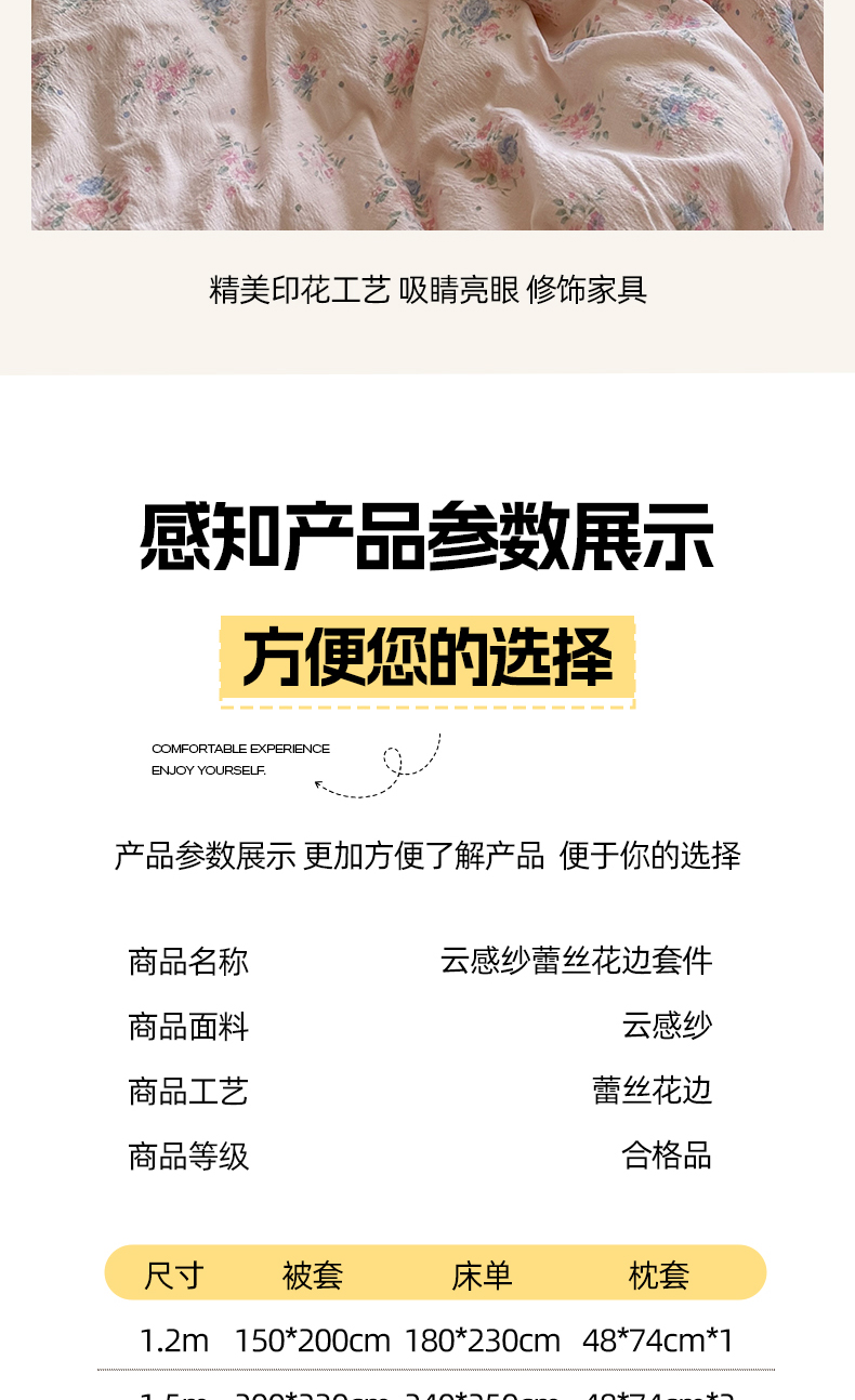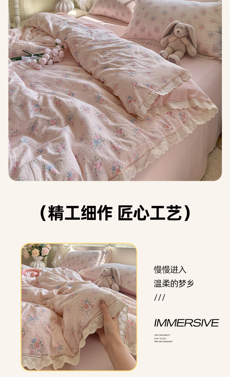 商品名称:Mata蔓塔家 2025新款云感双层纱全棉镂空花边四件套 颂歌