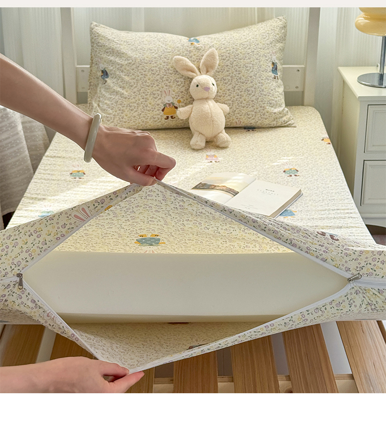 多品家纺 2025新款超柔双层纱学生宿舍单品床垫套 泡芙兔兔