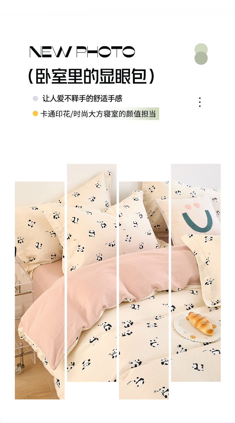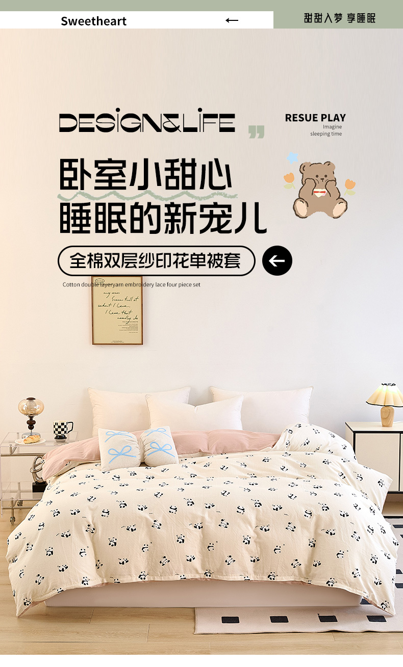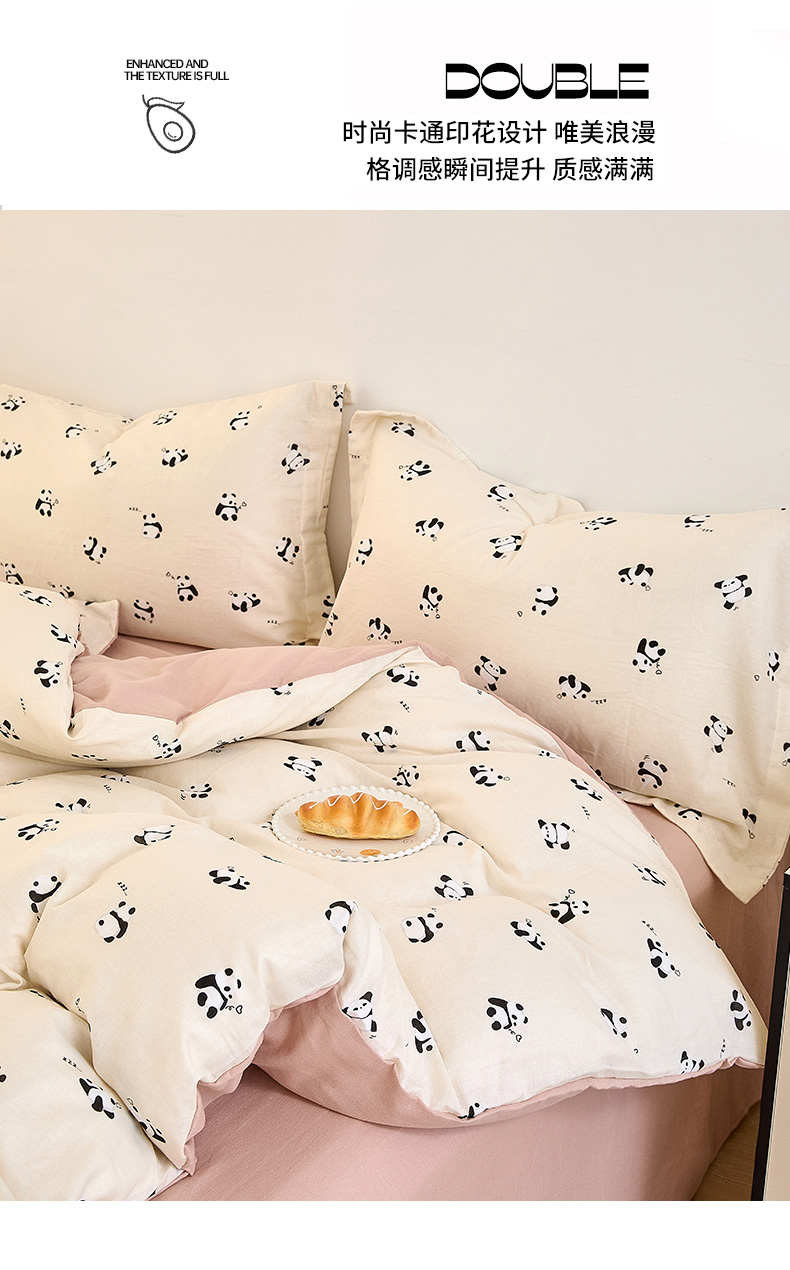 • 91家纺网 家纺一手货源 找家纺 锦罗绣 2025新款全棉双层纱印花单被套(第二批) 国宝熊猫